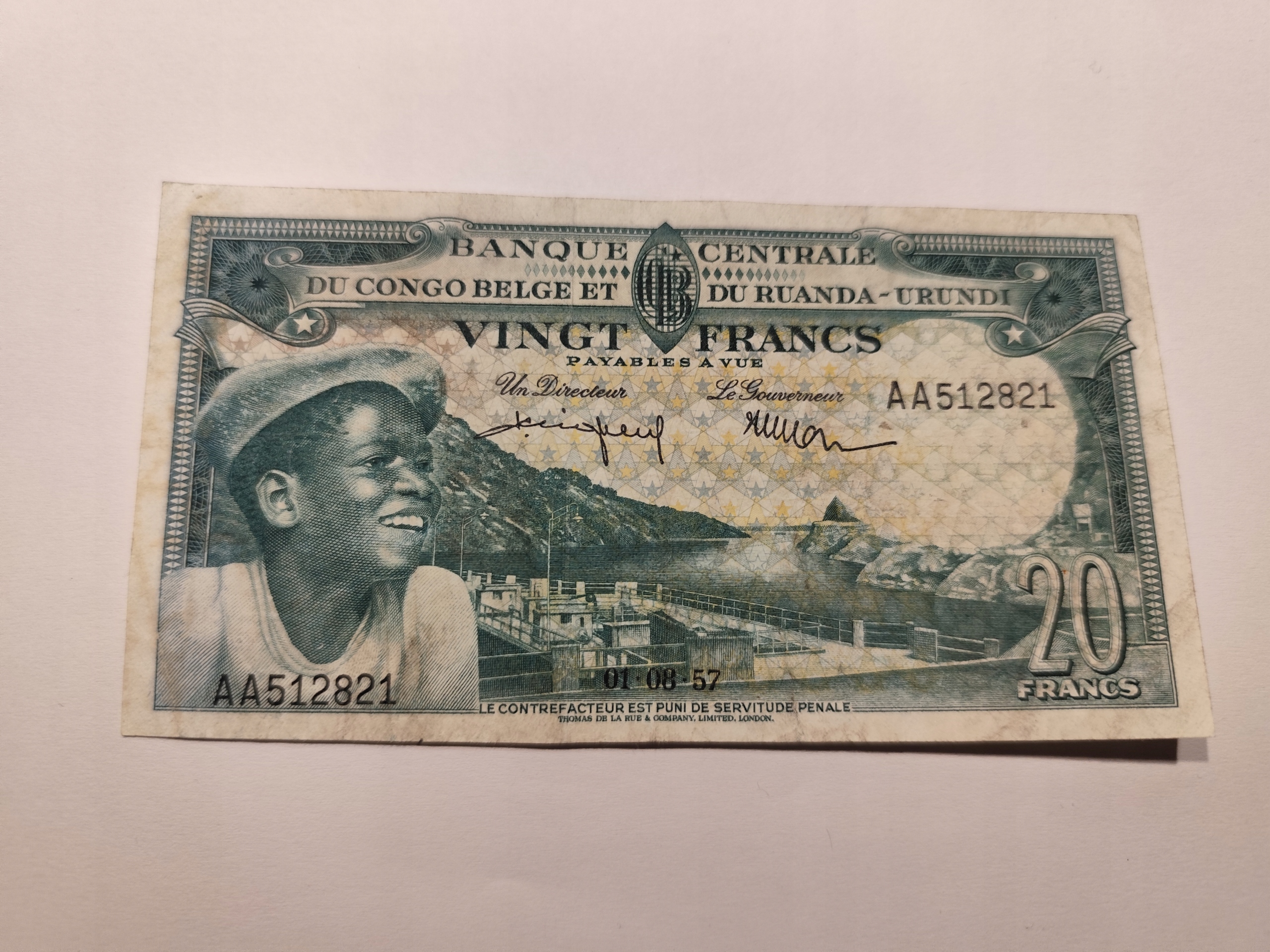 Kongo Belgijskie - 20 fankow - 1957 - rzadki
