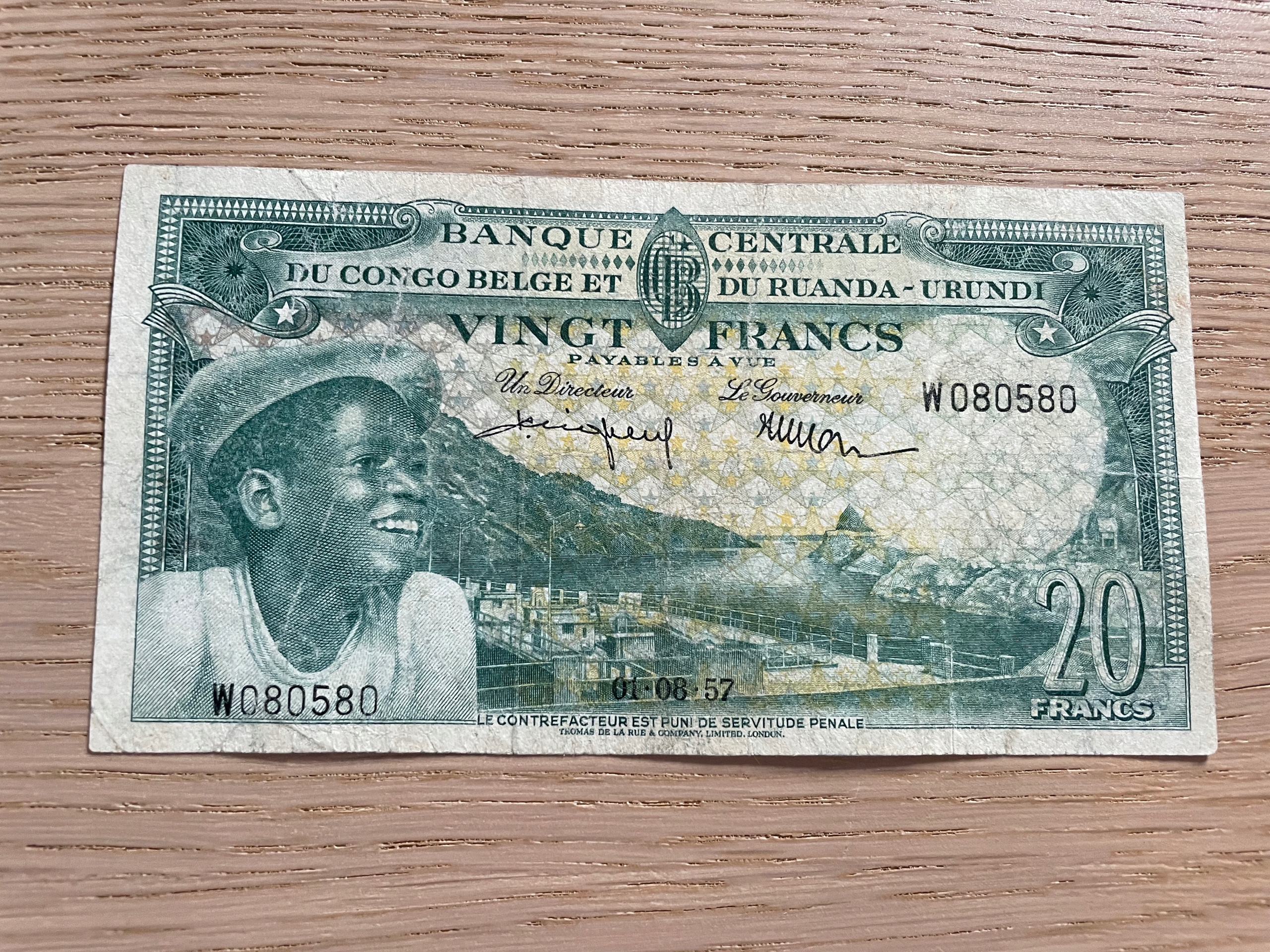 Kongo Belgijskie - 20 franków - 1957 - rzadki