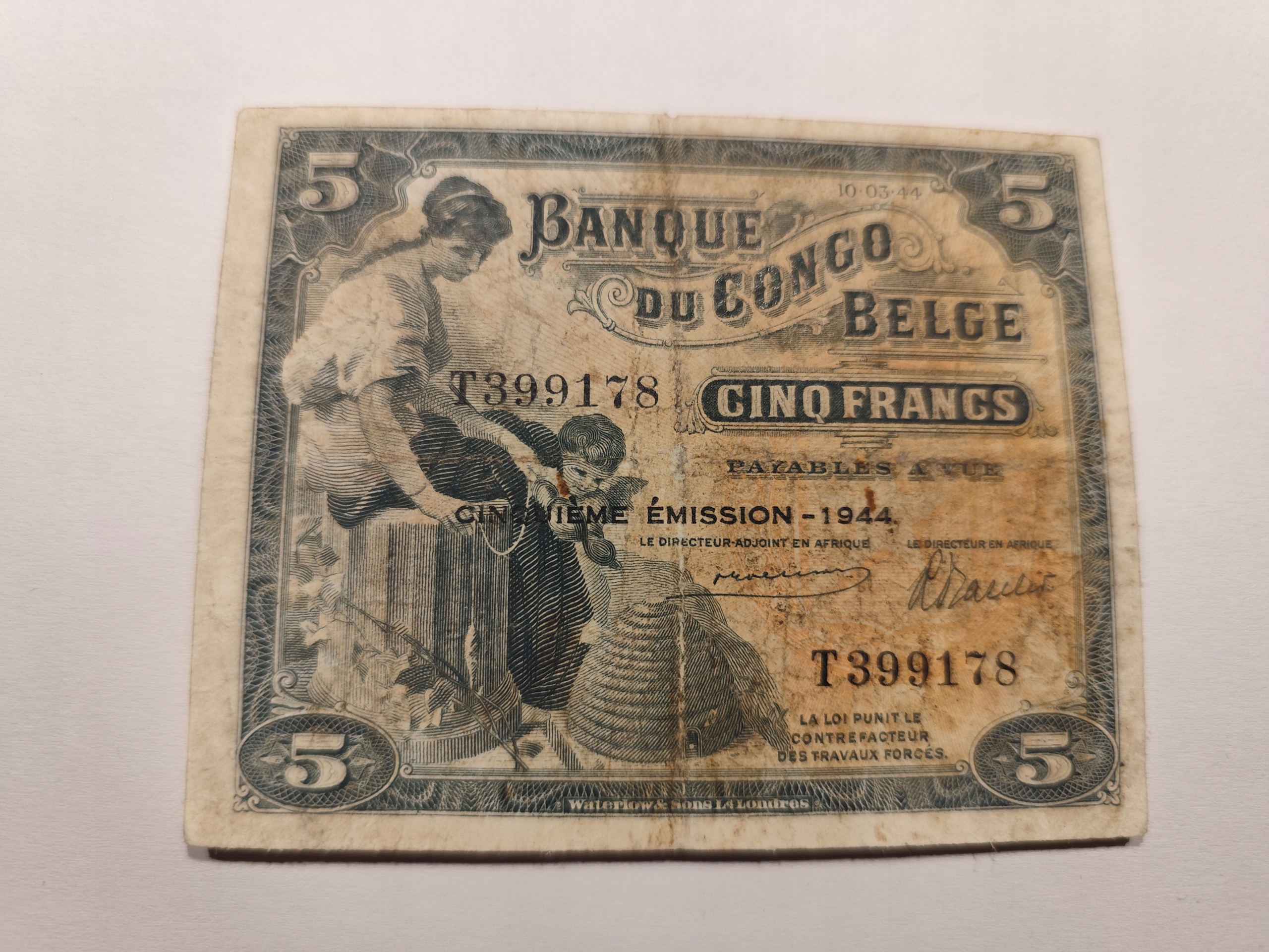 Kongo Belgijskie - 5 fankow - 1944 - rzadki