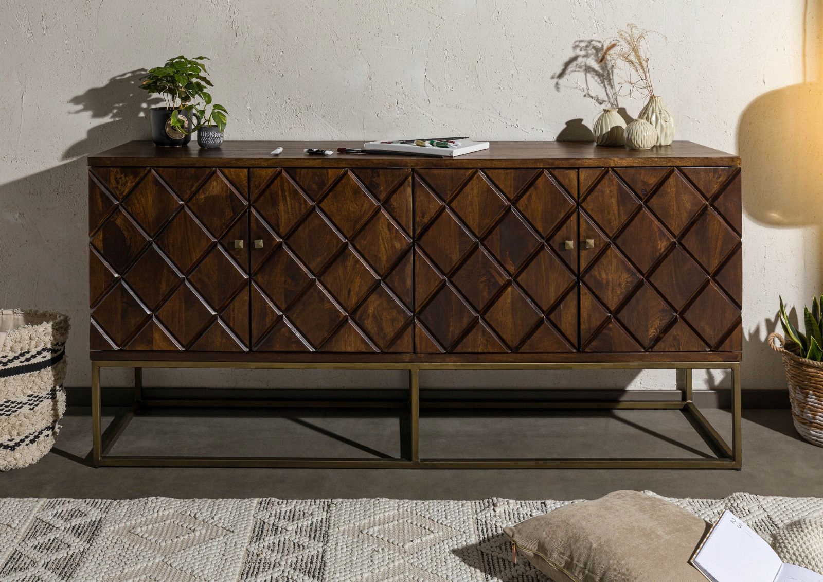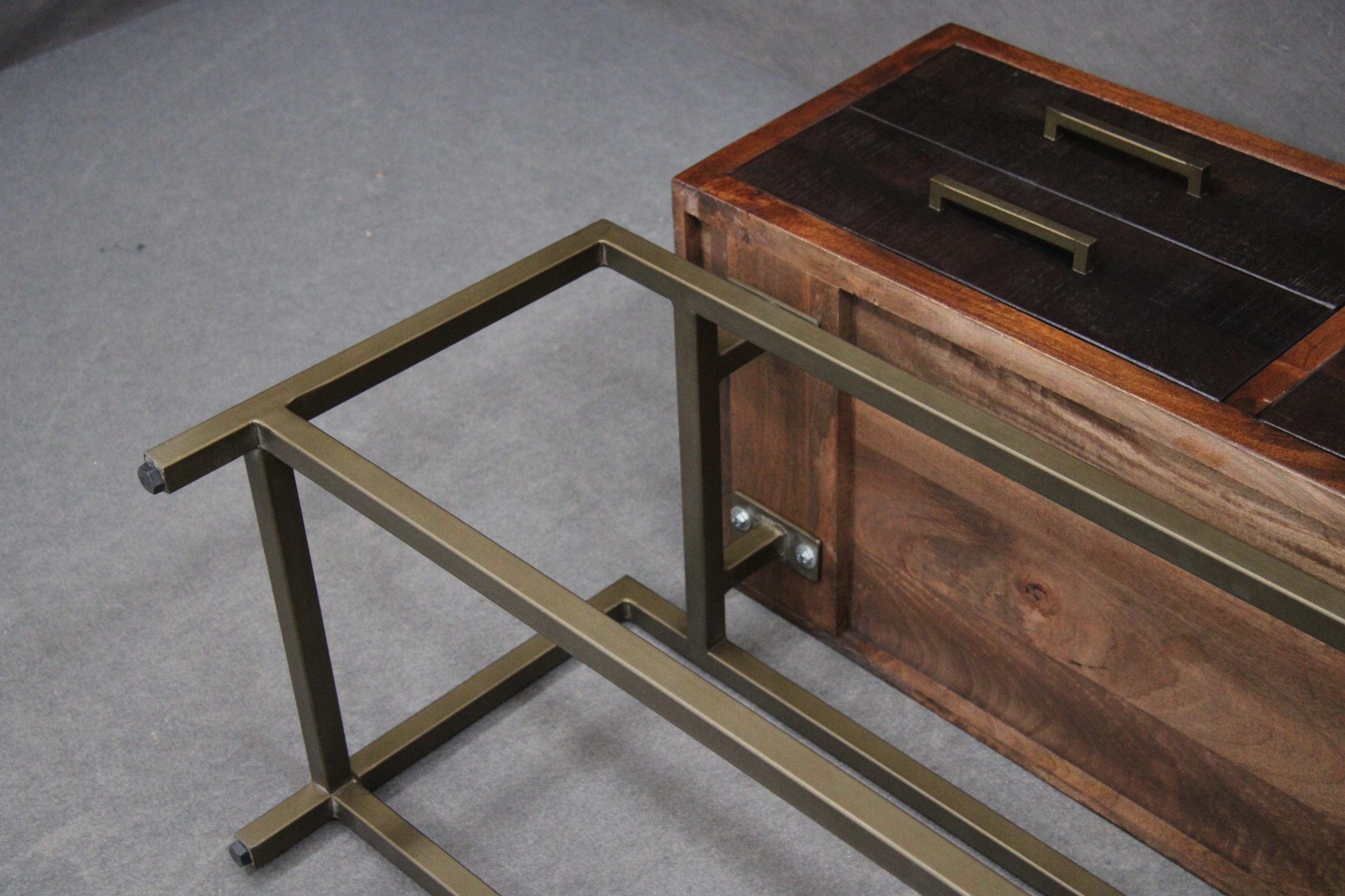 Консоль/Честер є новим у стилі горища/старовинного. Зроблено з індійського дерева манго. Кожен предмет меблів унікальний завдяки своєму ручному виробництву та типу деревини. Він відрізняється його кольорами та структурою дерева (невеликі тріщини, отвори, делікатні поглиблення, які виготовляються навмисно), які підкреслюють індивідуальність меблів. Металева конструкція темного золотого кольору, виготовлена в промисловому стилі. Повністю дерев’яні ящики з металевими ручками, які додатково мають замок, щоб не допустити їх витягування. Манго дерева характеризується твердістю, багатим зерном, а отже, різноманітними кольорами, підкреслюючи природний вигляд меблів.