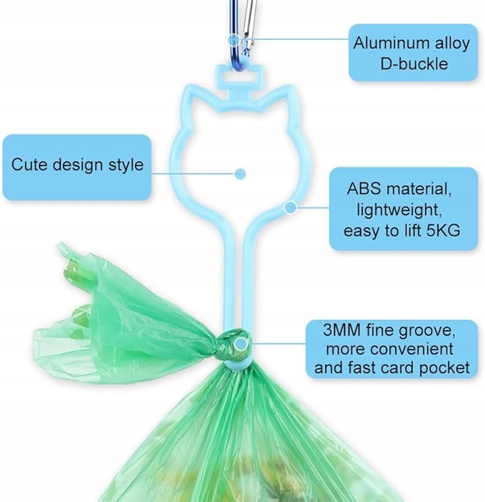 - Транспортер для мішків для собак - ця ручка дозволяє ходити, не використовуючи руки. Немає необхідності носити сумки на собачих послідах весь час під час прогулянок із собакою. Носіть з вами щонайменше 2 мішки з послідом (по одному з кожного боку). До нашого дозатора легко прикріпити до собачого посліду (сумки для зберігання) або до більшості повідок.