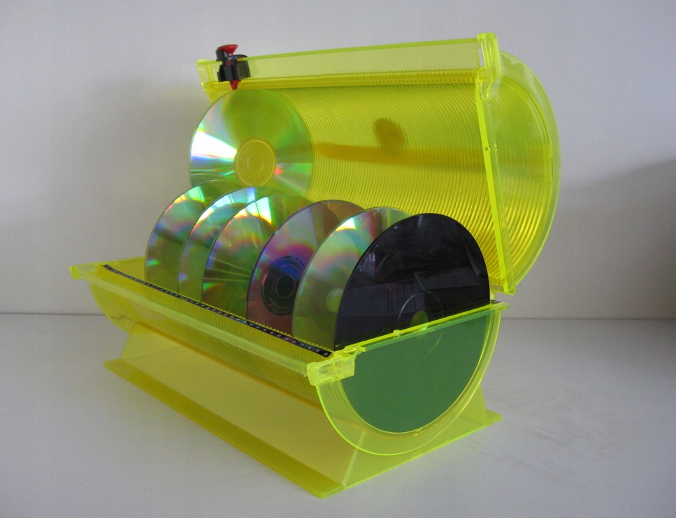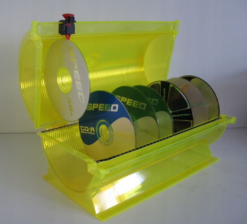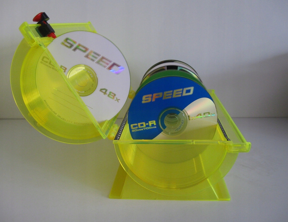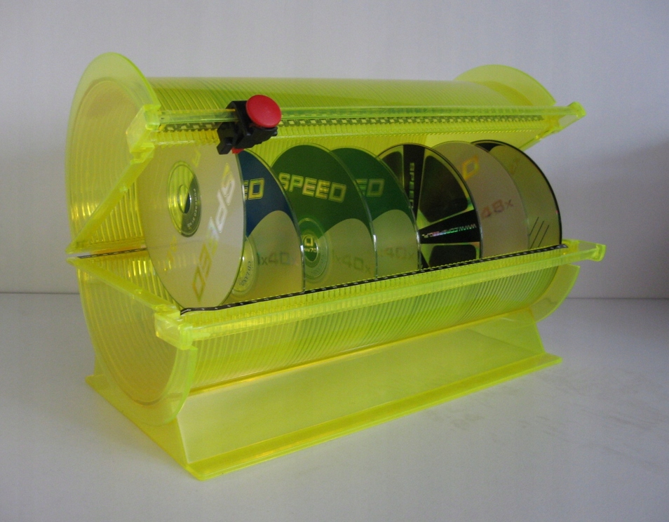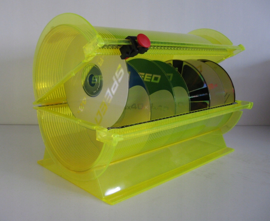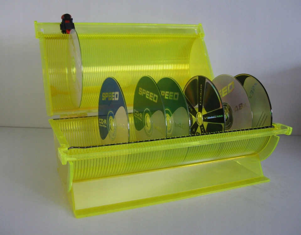 Collective box for 80 CD/DVD Yellow CDs with a slider for selecting the selected plate