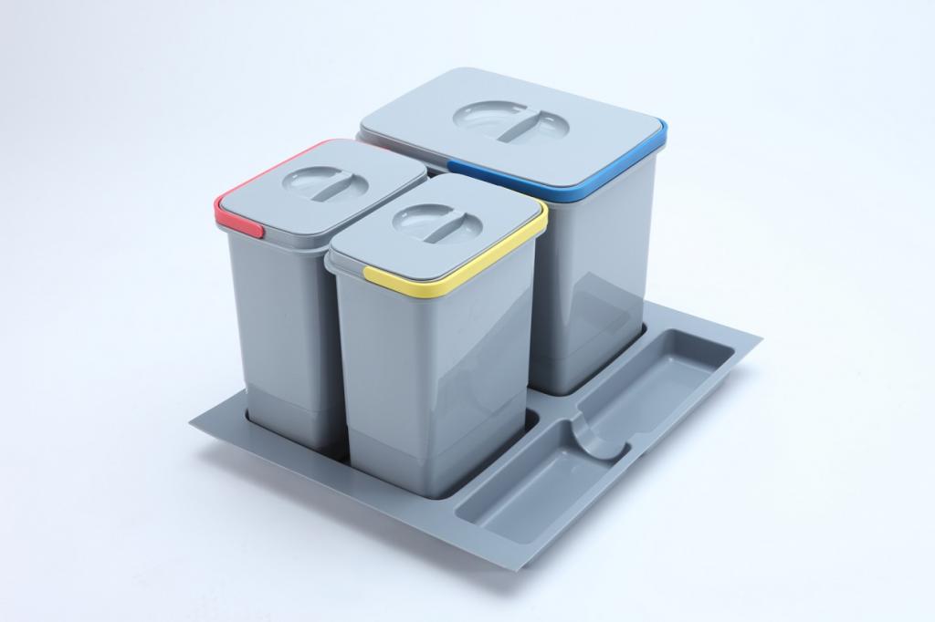 Вся система дозволяє розділяти відходи на три фракції: 2х7 літрів і 1х15 літрів.