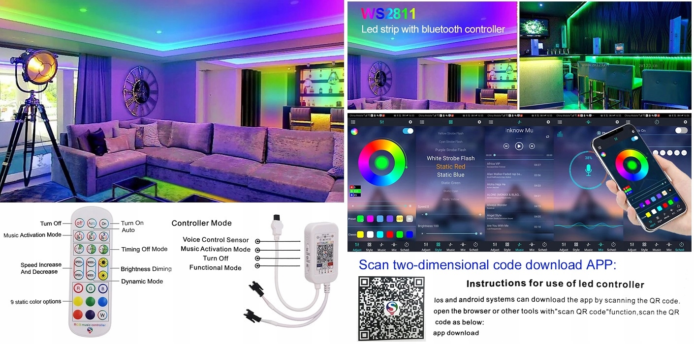 - Додаток: цифрові цифрові казки Адресне світлодіодне світло. Він підтримує як контроль програми, так і інфрачервоний пульт дистанційного керування.