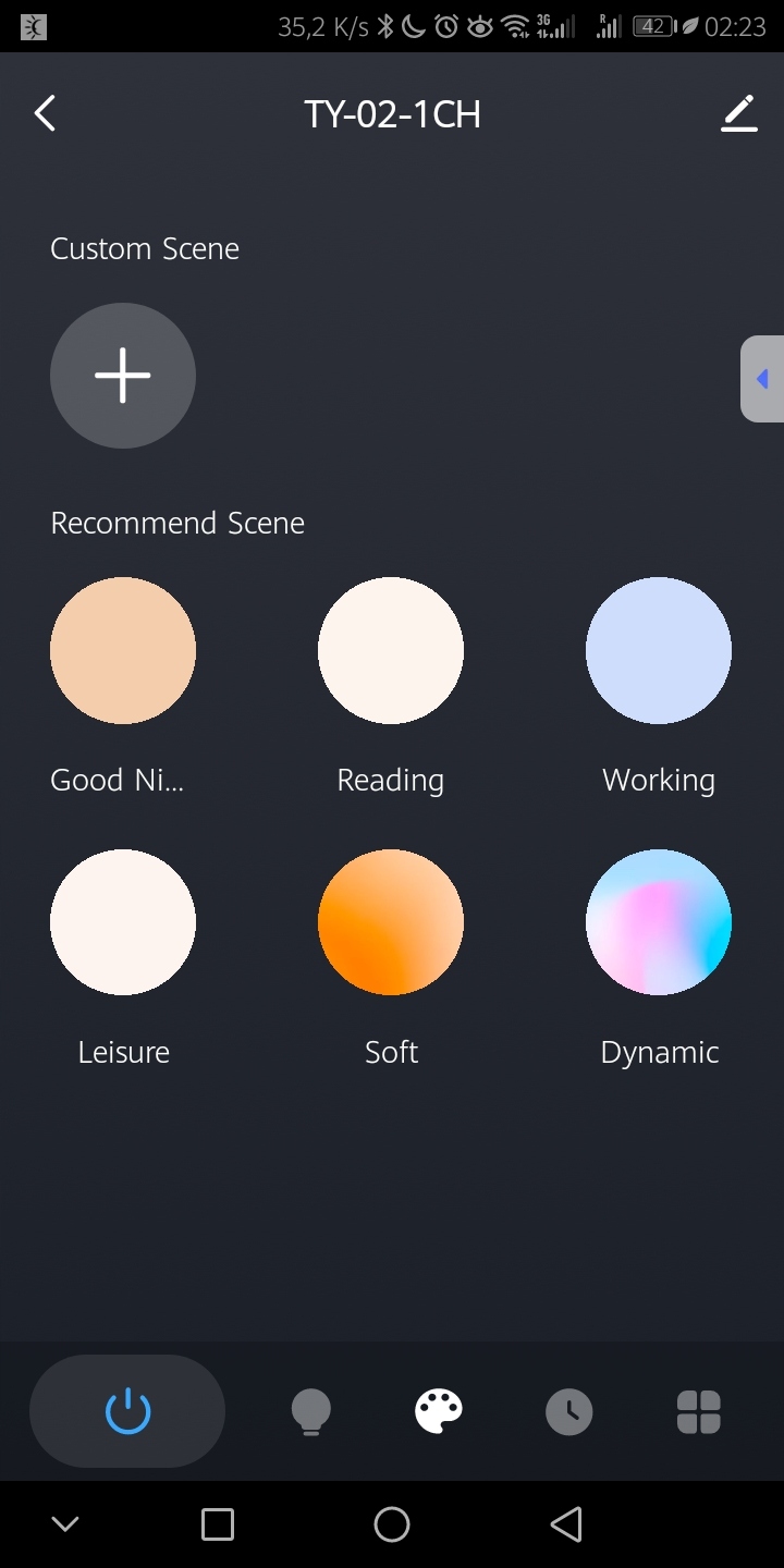 Сцена - використовуйте шість попередньо визначених сцен освітлення або визначте власну, регулюючи порядок, інтенсивність і режим освітлення відповідно до ваших уподобань.