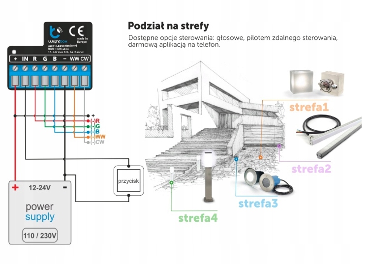 BleBox wLightBox v3 — це найменший у світі бездротовий контролер освітлення, який дозволяє керувати одноколірним, багатоколірним (RGB/RGBW), білим відтінком CT (CCT, CW/WW) або низьковольтне світлодіодне освітлення галогенними лампочками; працює за допомогою не тільки смартфонів і планшетів, а й ноутбуків, персональних комп'ютерів та інших сучасних пристроїв