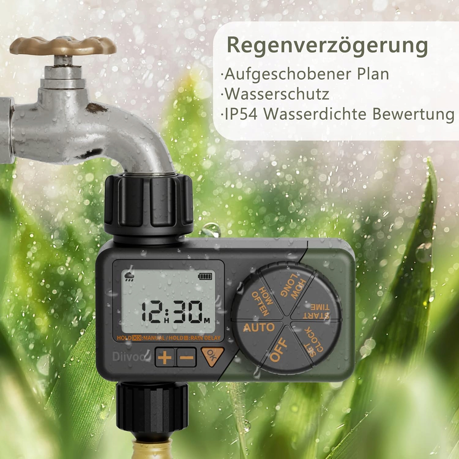 - Своєчасне кероване та циклічне зважування: завдяки годиннику: Diivoo з лічильником зрошення можна зрошувати в певні дні. Ви можете встановити час початку, час зрошення (від 1 хвилини до 3 годин і 59 хвилин) та частоту зрошення (від кожної години до кожної 12 голосів або з кожного дня до всіх семи днів, у тому числі лише в навіть дні або лише на непарні). Завдяки Diivoo Garden Clock ви можете ще точно контролювати зрошення! Однак якщо вам потрібно зрошувати лише один раз на день або через день, ви можете відрегулювати частоту зрошення до плану, використовуючи "як часто) Двір, фонтани, ферми та багато інших