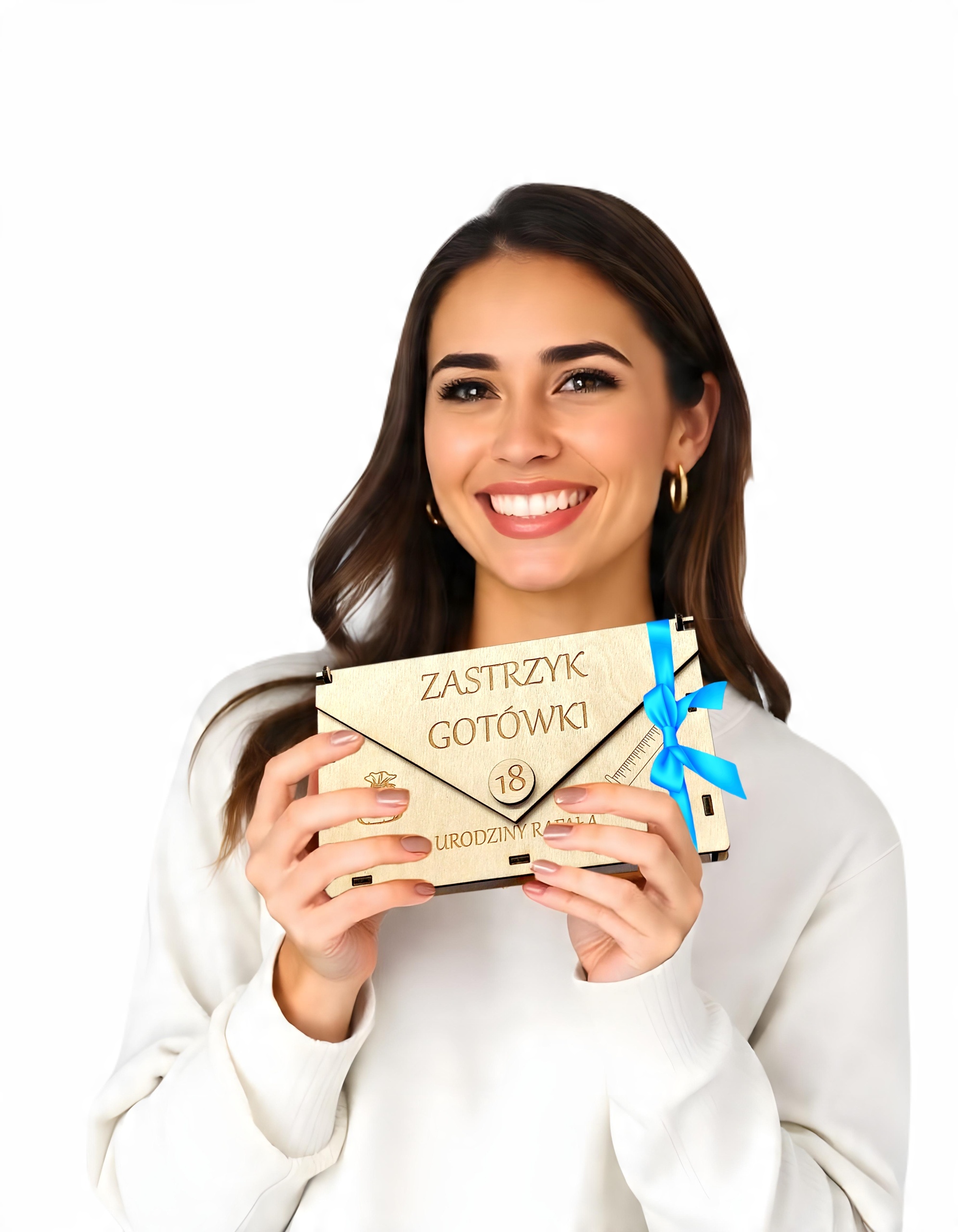 Дерев’яний конверт - Грошова коробка - подарунок на 18 -й день народження / вісімнадцять з персоналізації побажань на день народження