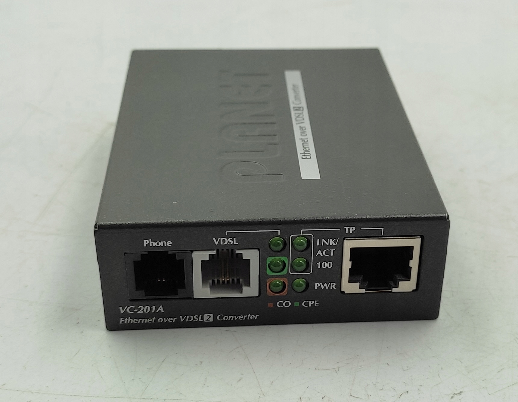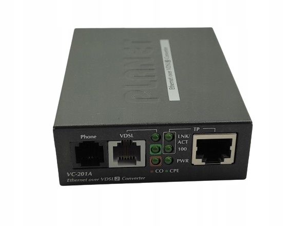 PLANET VC-201A — це високопродуктивний перетворювач Ethernet через VDSL2. Він заснований на двох мережевих технологіях: Ethernet і VDSL2 (Цифрова абонентська лінія 2 з дуже високою швидкістю передачі даних). Останній гарантує максимально швидке з'єднання через існуючі мідні телефонні мережі. VC-201A підтримує асиметричні з’єднання 100/55 Мбіт/с на відстані до 200 м і 25/4 Мбіт/с на відстані 1,6 км за допомогою звичайної телефонної лінії.
