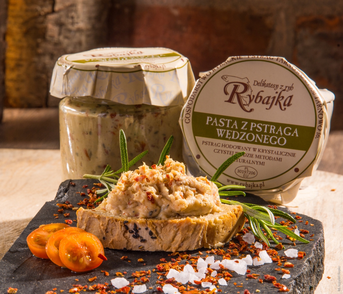 копчена форельна паста - ніжна, суха і дуже смачна, що складається з копченої форелі, сушених помідорів, суміші трав і трохи майонезу. Ідеальне доповнення до дієтичних бутербродів або тартінів.