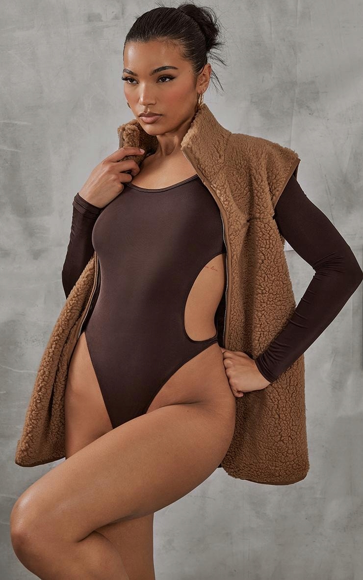 Коричневе тіло з різанням гладких довгих рукавів PrettyLittlingething 36