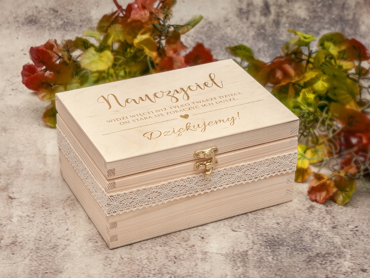 Дерев'яна скринька + унікальне гравіювання імені для вчителя.