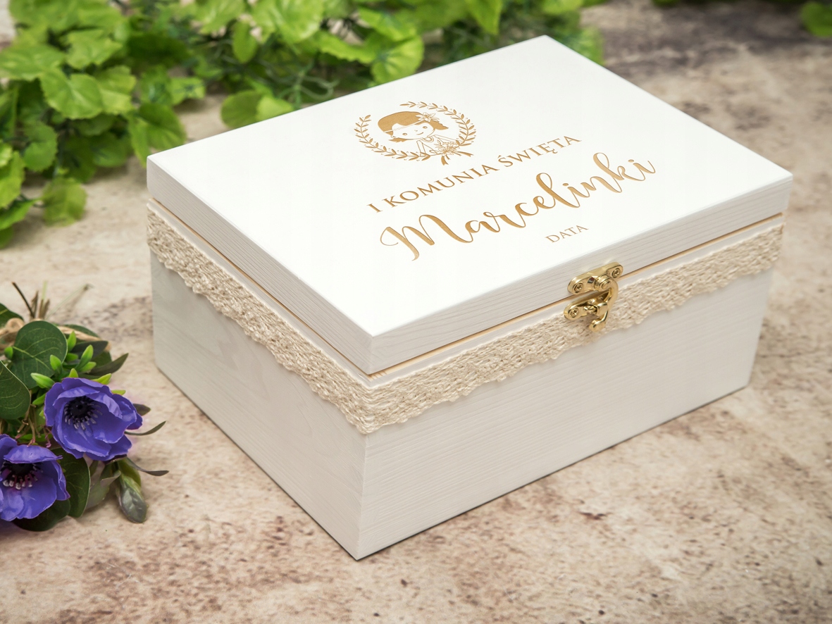 Дерев'яна скринька - пам'ять про Перше Святе Причастя з особистою присвятою.