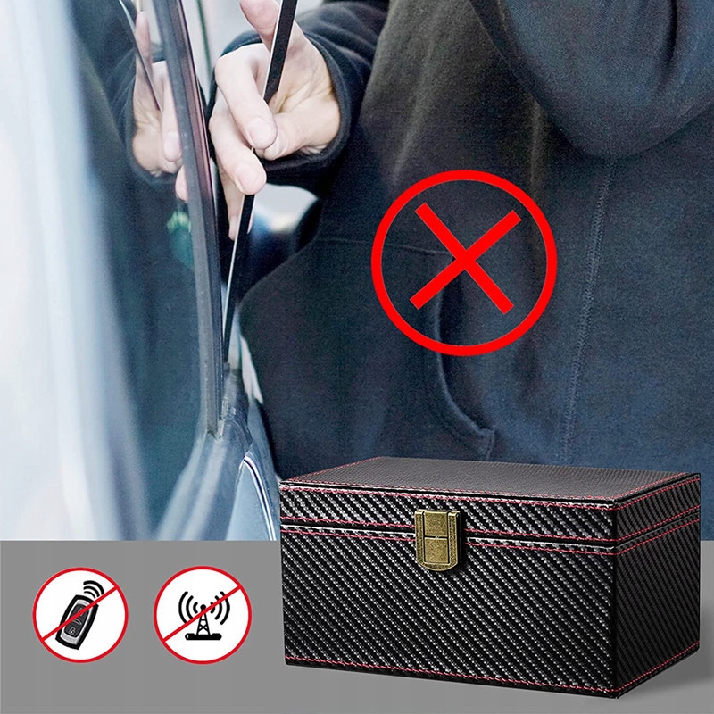 - Як би ви почувались, якби ваш автомобіль був викрадений з водіння під час сну? Зараз машину викрадають кожні дві хвилини, коробка Фарадея запобігає крадіжці клавіші автомобіля без ключа. Злодії здатні зміцнити сигнал нефуляційного автомобіля віддалено за допомогою пристрою, що підтримує сигнал під час сну