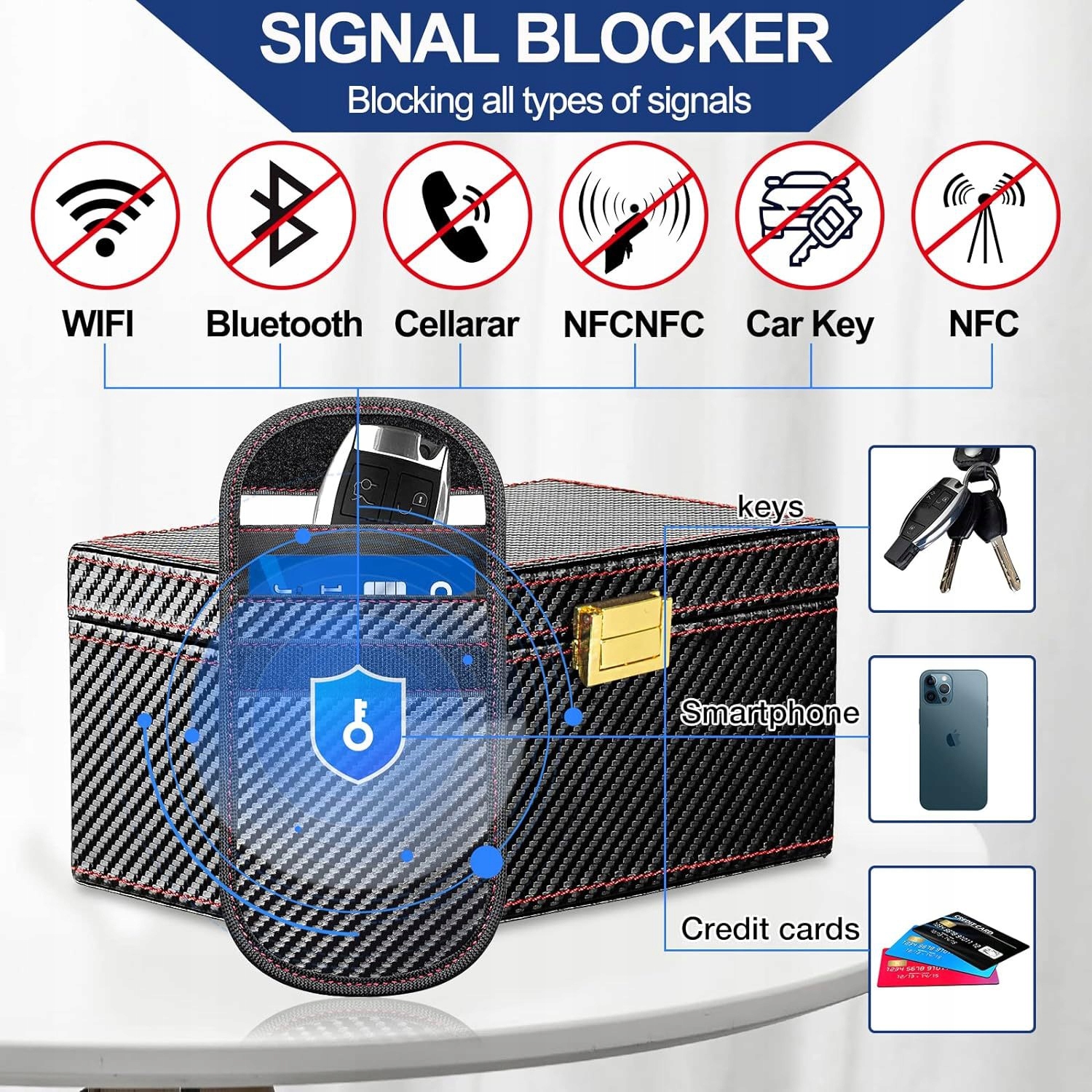 - Розмір поля Faraday -Free -11.5x9x6.2 см. Він може вмістити 3-4 клавіші автомобілів, включаючи ключі та домашні клавіші, тому вам не потрібно носити багато маленьких сумки для блокування сигналу. Ця велика коробка блокування сигналу відповідає майже всім клавішам автомобіля. Ви можете розмістити всі сімейні клавіші та запасні ключі в цій коробці Faraday для зберігання автомобілів, щоб забезпечити ваш автомобіль захист безпеки!