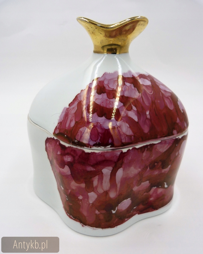 Цікава коробка цукерок, коробка в стилі арт-деко королівської мануфактури Теттау. Теттау - це порцеляна найвищої якості і багата колекція унікальних колекцій. Вироблено на найстарішому на даний момент порцеляновому заводі в Баварії, заснованому в 1794 році. за сприяння відомого натураліста Олександра фон Гумбольдта.З 1957 року завод належить Seltmann Weiden Group.Крім посуду бренд має широкий асортимент колекцій, прикрашених роботами великих художників, таких як Фріденсрайх Гундертвассер, Пабло Пікассо, Вільям Тернер, Оскар Коллер і Тулюз Лотрек. Виготовлена з білої порцеляни, декорована вручну. Позолота на ручці має невеликі потертості. Фарфор в дуже хорошому стані.