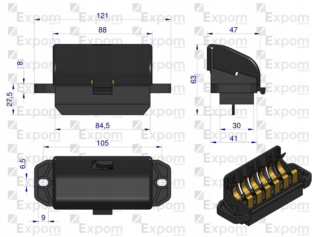 Коробка запобіжників EXPOM KWIDZYN eu 6-кратна — це продукт, виготовлений з особливою ретельністю. Контакти виготовлені з мідних сплавів у поєднанні з дорогоцінними металами, що гарантує не тільки чудові електричні, але й механічні властивості. Відповідна жорсткість з'єднань запобіжників забезпечує оптимальний електричний контакт, який необхідний для належної роботи електричної системи.Вся конструкція коробки була розроблена та виготовлена з нуля.Ця нова модель є найкращим продуктом, який гарантує тривалу надійну роботу .