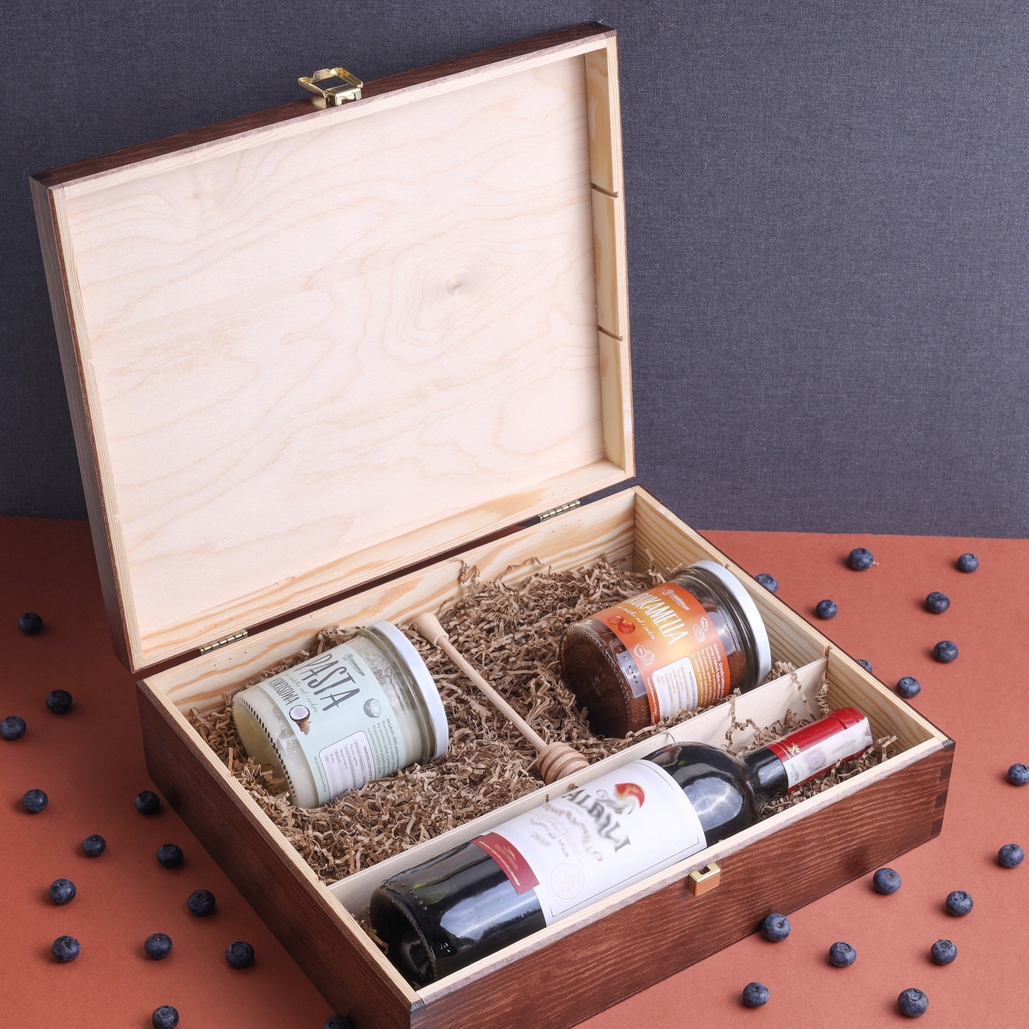 Дерев’яна коробка на 3 вина 35 х 30 х 10 см із замком для прикраси