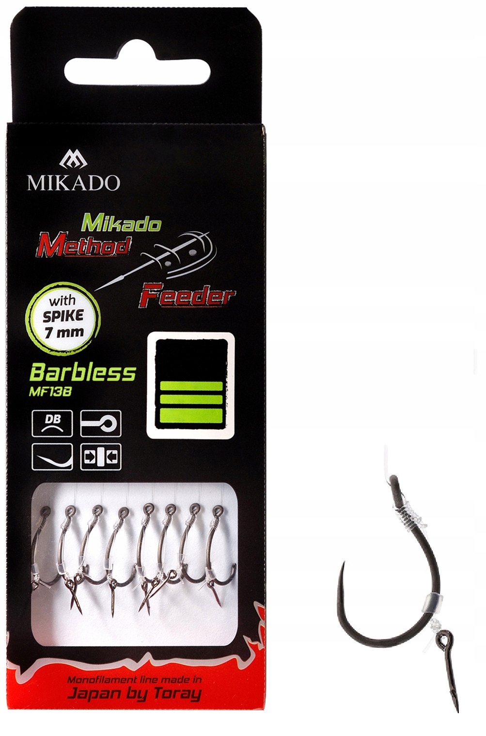 Гачки вченого MF13, пов'язані з приводом до техніки подачі методу. Часто вимагається в комерційному рибальстві. Закінчивши верхньою лінією класу, голкою для монтажу приманки та пекельного, гачка без запаху MF13.