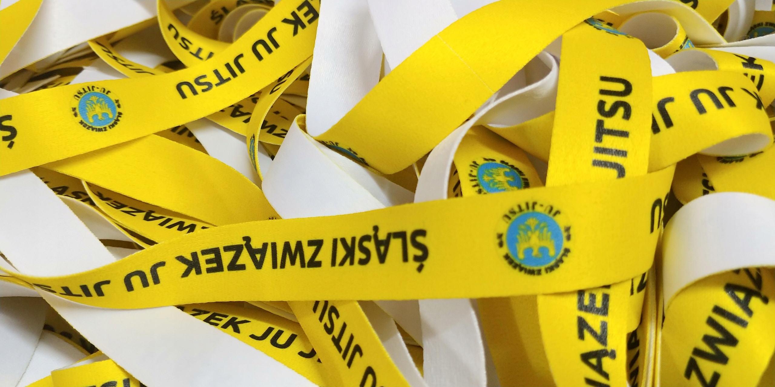 - Рекламний шнурок шириною 20 мм, біла стрічка + односторонній друк ( CMYK)