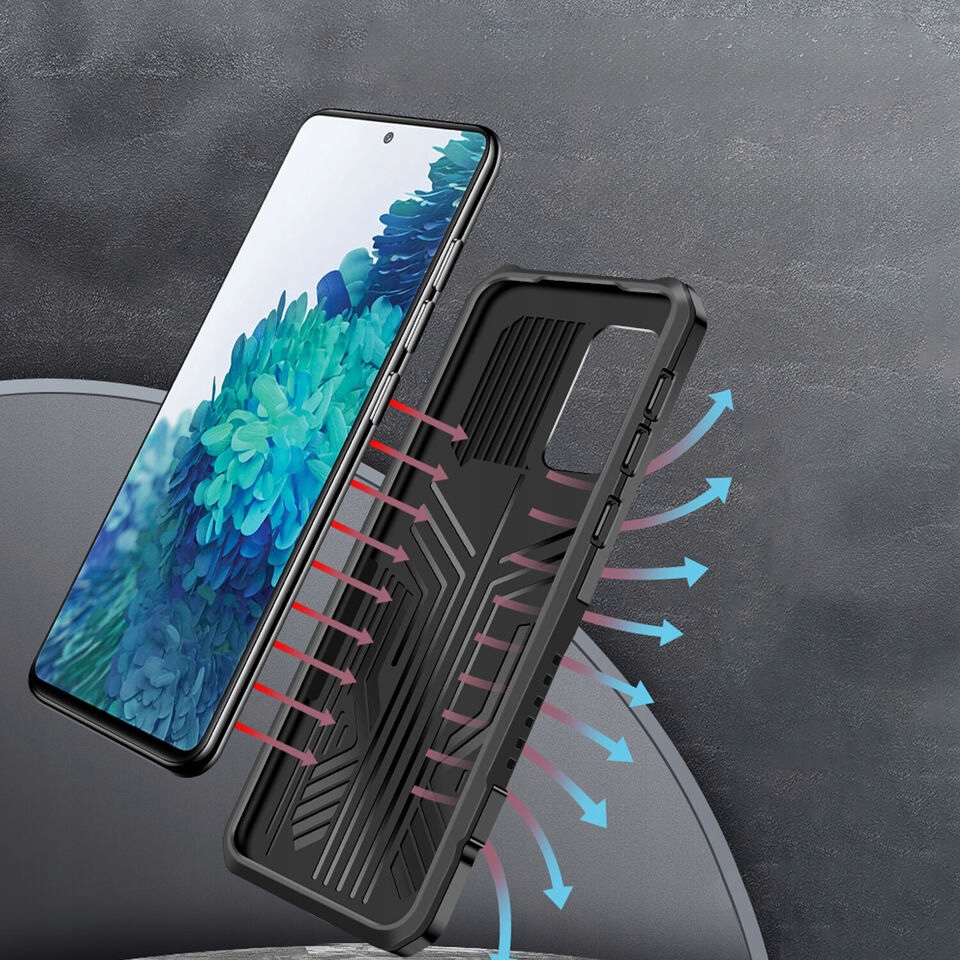- Захисний випадок, що складається з двох матеріалів: tpu та твердий полікарбонат, покритий не -слизальним шаром. Це забезпечує великий захист, зберігаючи повну функціональність. 4