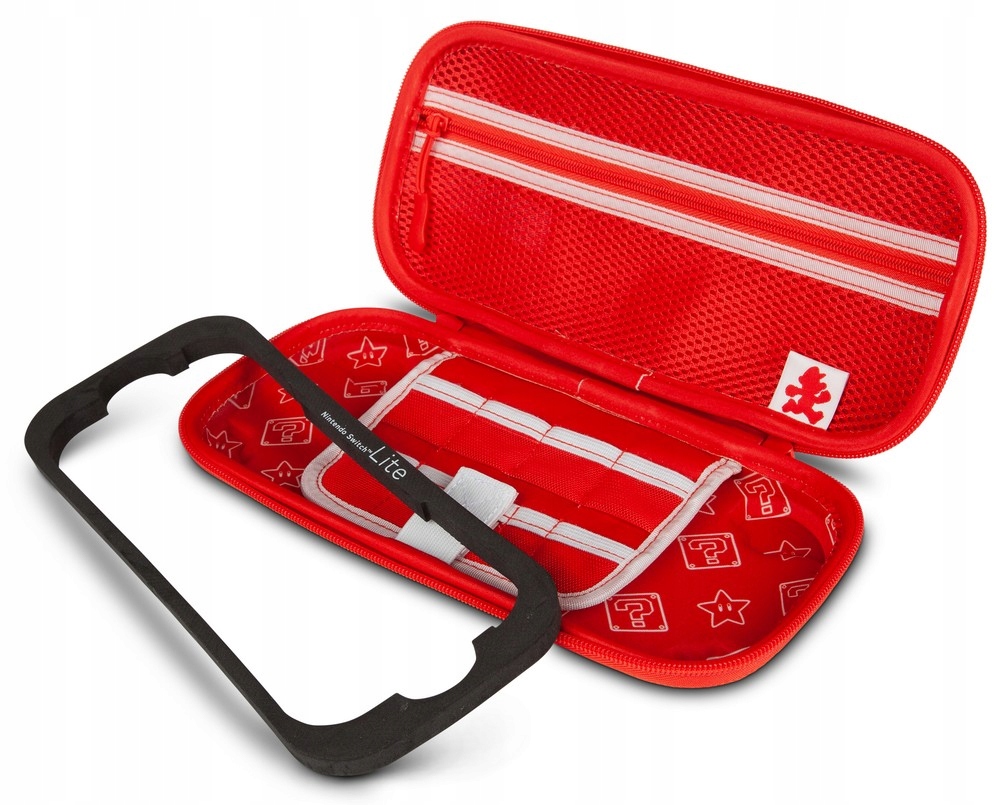 Грайте в ігри в дорозі за допомогою міцного компактного футляра для консолі, який підходить для консолі Switch/Switch Lite/OLED. Усередині цього чохла Nintendo Switch ви знайдете повстяну підкладку, графіку Маріо, захисну плівку для екрана з місцем для шести ігрових карток і сітчасту кишеню на блискавці для дрібних аксесуарів. Цей портативний футляр дає вам свободу грати з консоллю Nintendo Switch у дорозі. Куди завгодно. Коли завгодно.