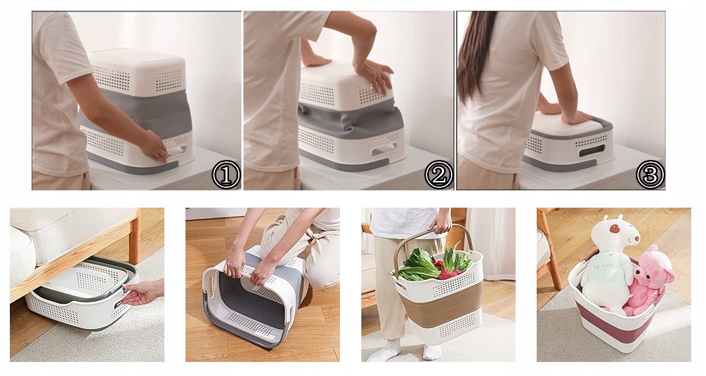 Наша коробка складається до переносного розміру та відкривається у відро. Легко зберігати після використання. Це пластикове відро можна скласти та зберігати під ліжком, столом чи диваном.