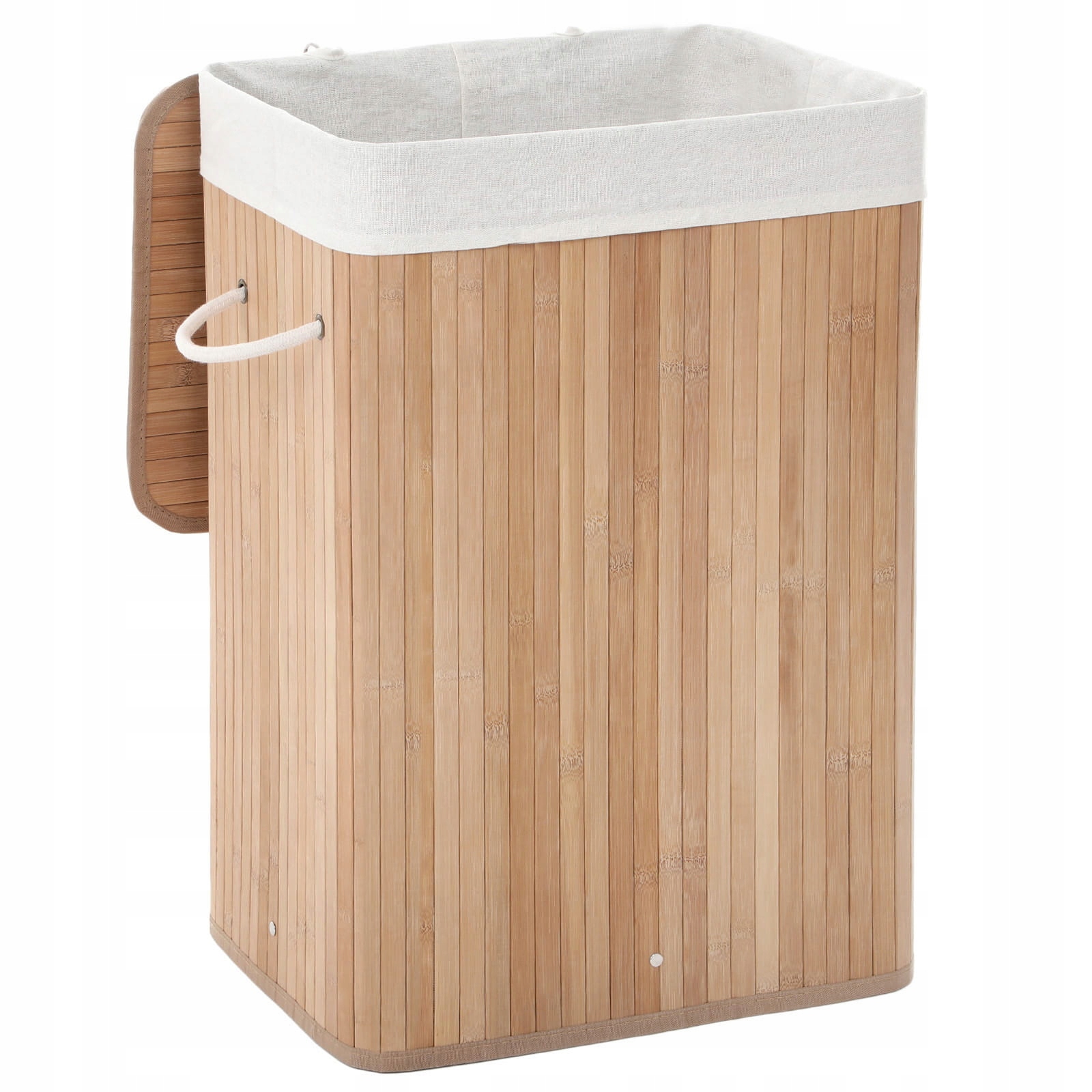 Кошик для білизни з бамбука на одне відділення з кришкою і знімним вкладишем, 72 л