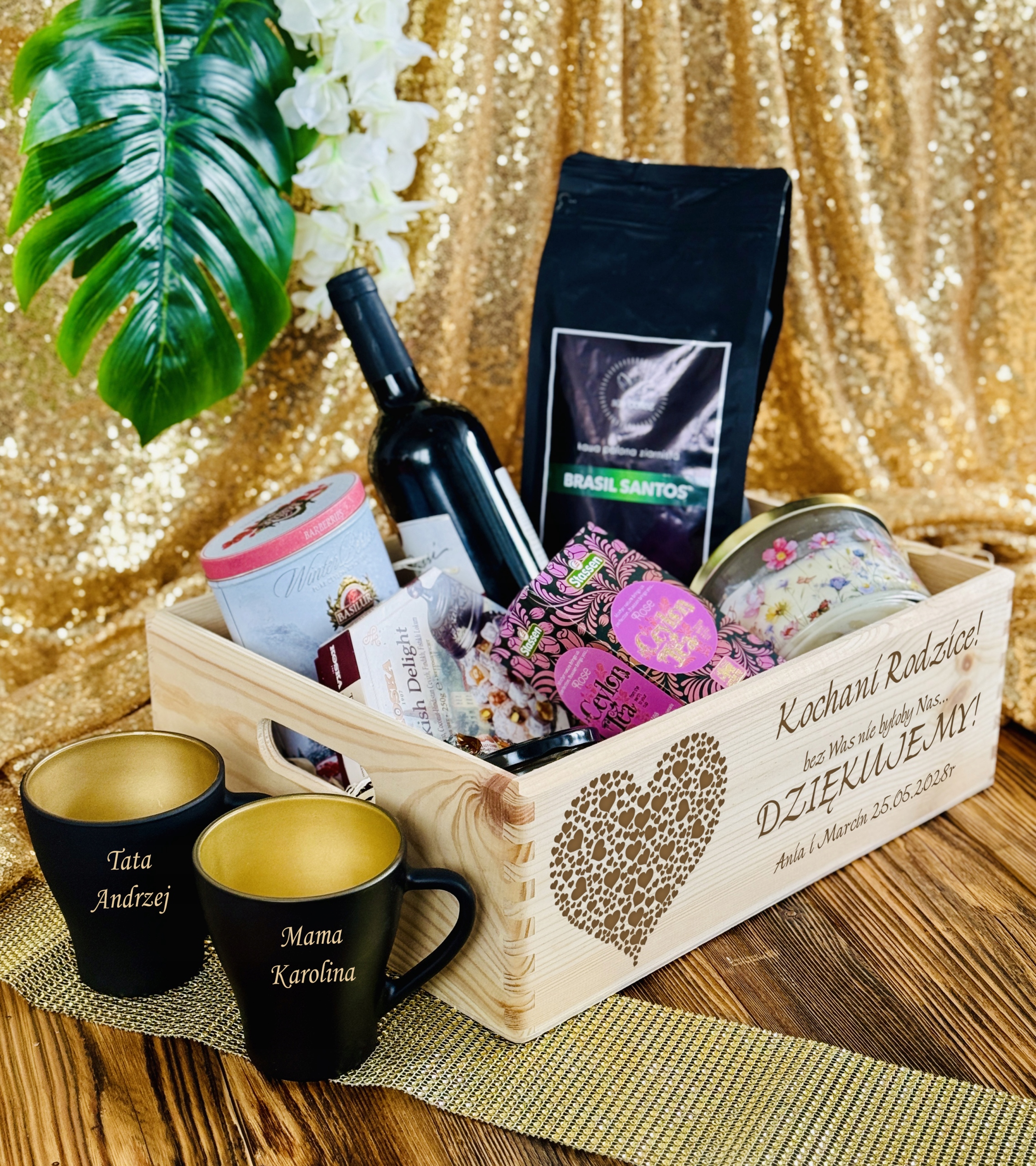 Кошик з коробкою Велике спасибі Natural XL Чорні чашки + гравірування