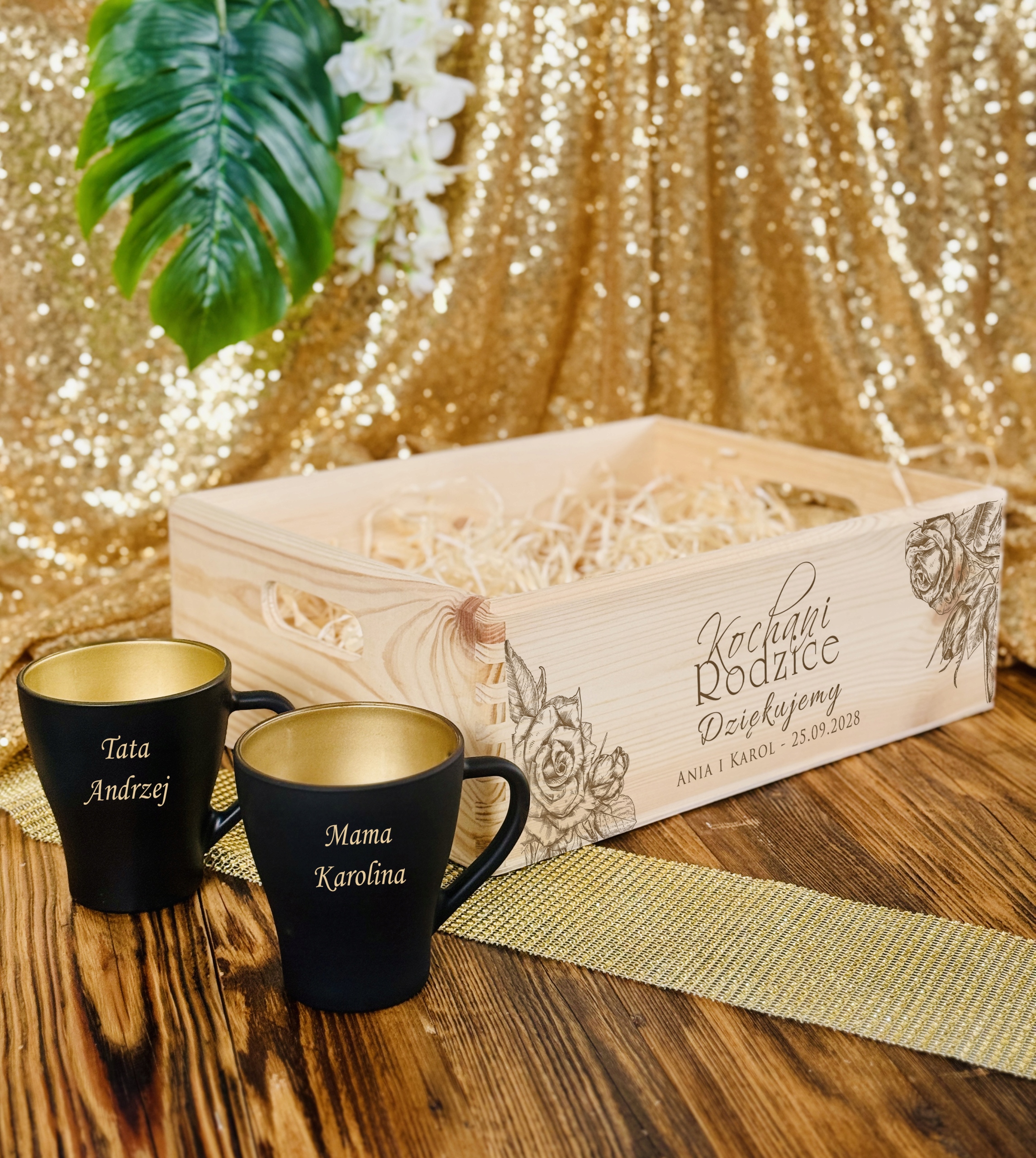 ☀ Для цього аукціону ви додатково купуєте набір із гравірованими чорними чашками із золотистими засобами з іменами батьків!