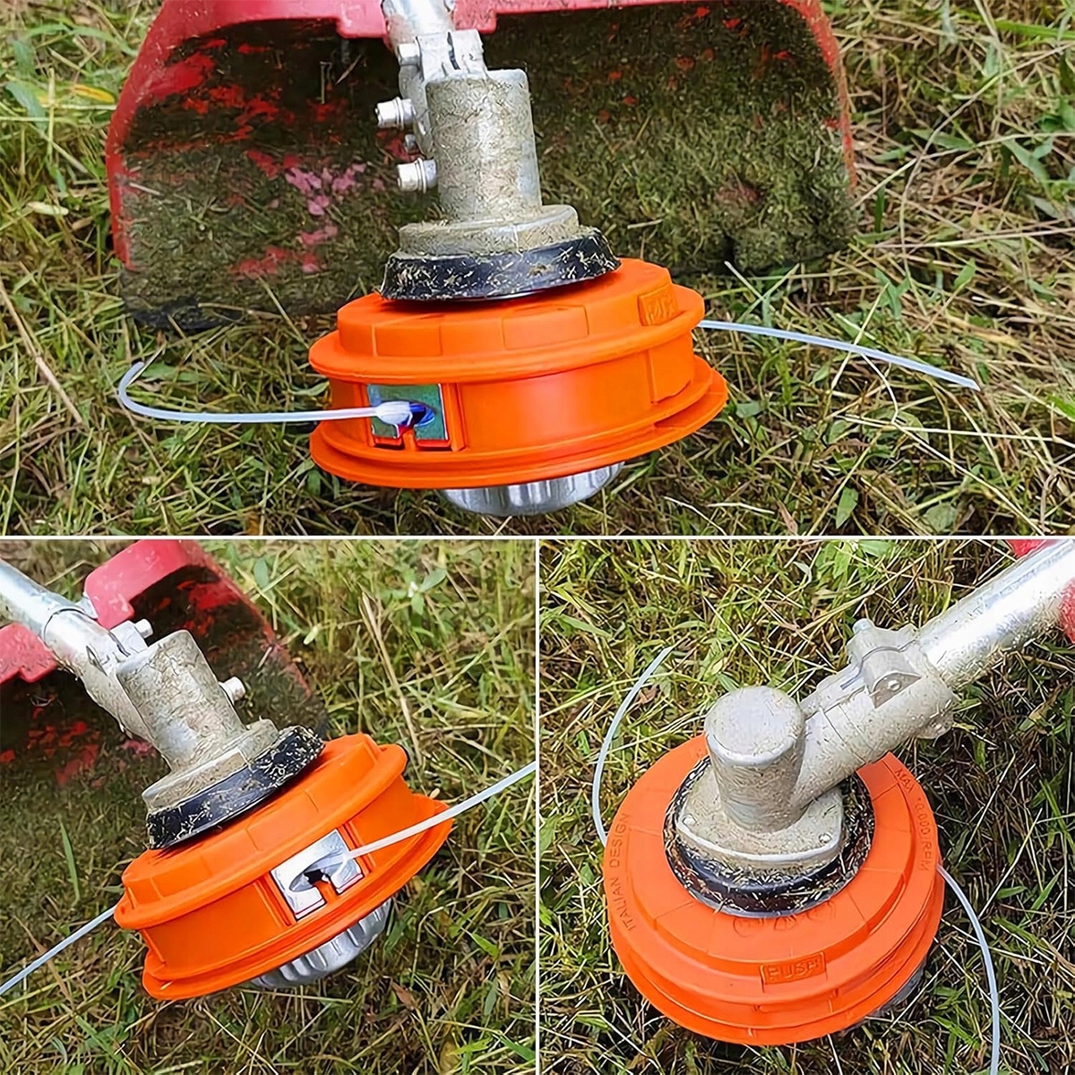 Легке заповнення завдяки легкій функції завантаження: для цього просто встановіть дві стрілки догори дном, а потім поверніть середню кнопку відповідно до руху за годинниковою стрілкою, і нитка буде працювати автоматично! Завдяки перевіреному автоматичному механізму обмотки, нитка виходить із котушки відразу після удару об землю, а металевий пристрій обмотки неодноразово продовжує термін експлуатації голови! Ідеально підходить для скошування та різання трави та бур’янів у великих масштабах.