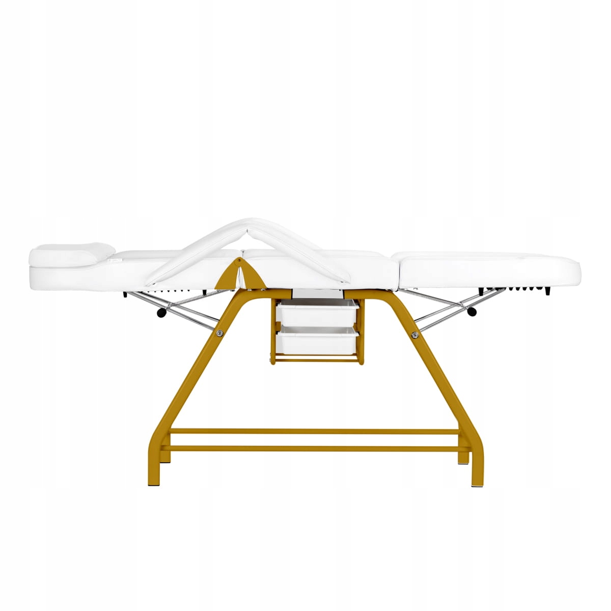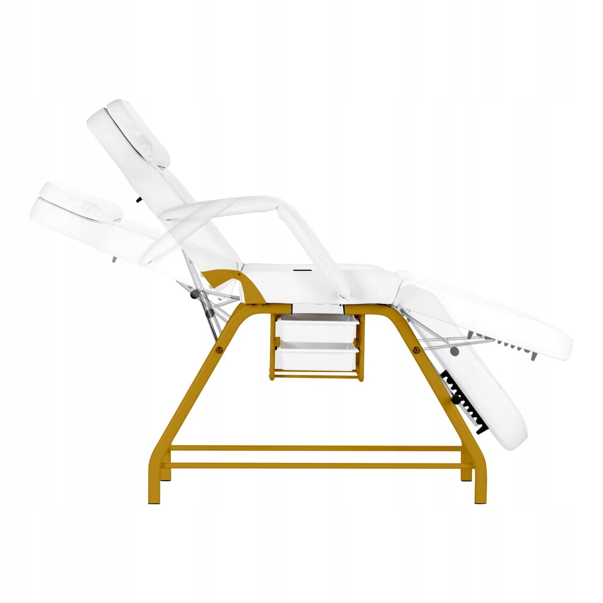 КОСМЕТИЧНЕ КРІСЛО ПІДНОСЬ ЛІЖКО БІЛЕ ЗОЛОТО МАТ