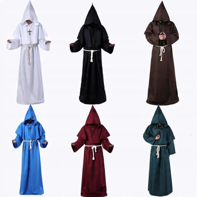 Тканина з поліестеру. Одягніться священиком на Хелловін або здивуйте друзів на костюмованій вечірці. Цей костюм священика включає мантію з капюшоном, закріплену мотузкою, яка виконує роль пояса.