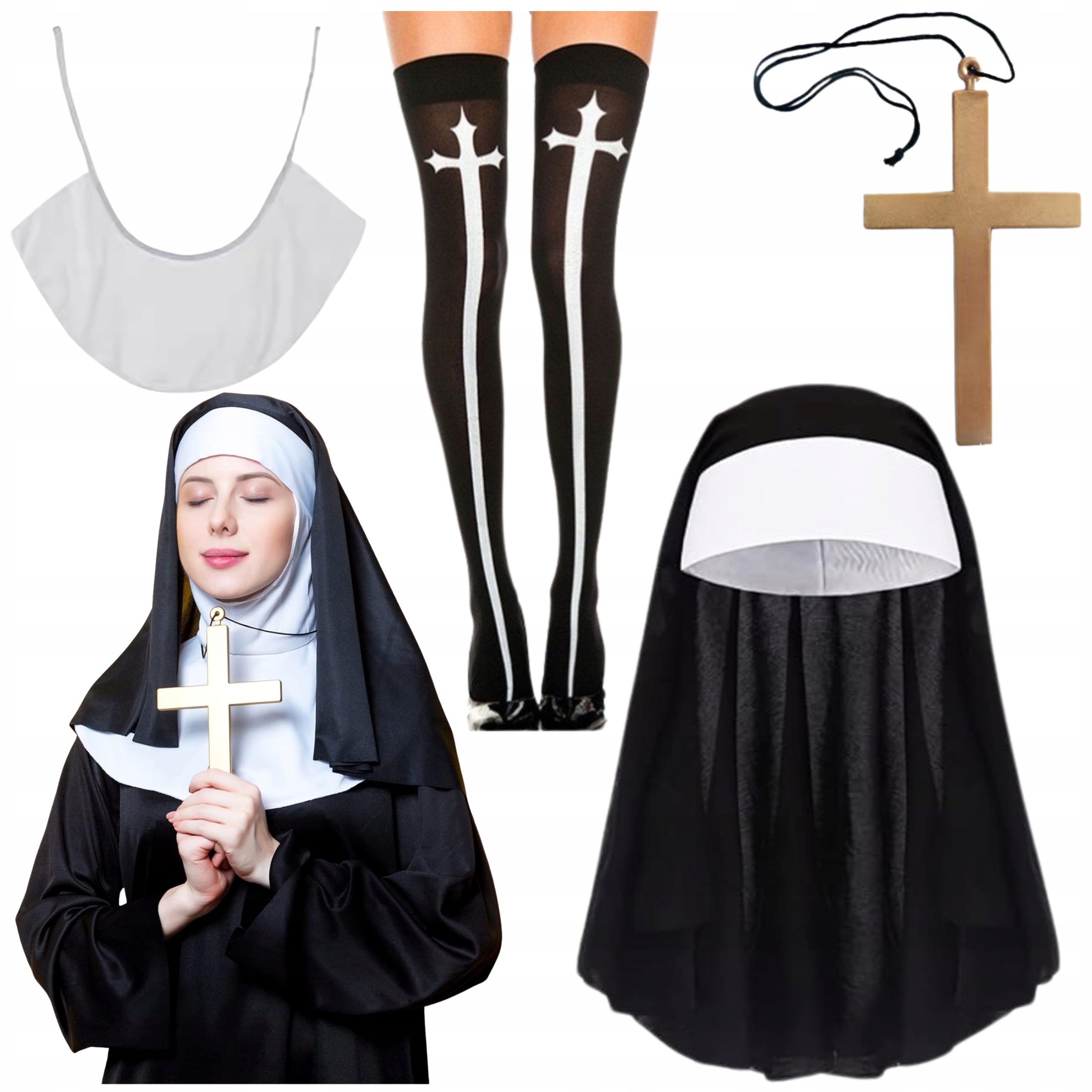 КОСТЮМ ЧЕРНИЦІ КОРНЕТ КОМІР ПАНЧОХИ ХРЕСТ КОСПЛЕЙ