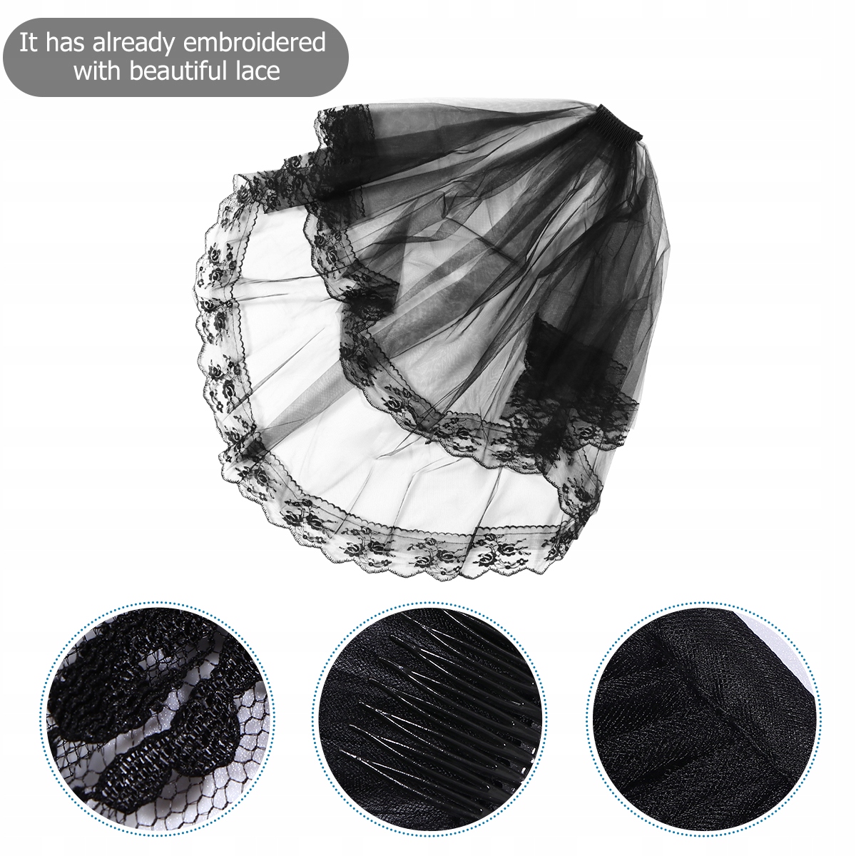 Це хеллоуїнська вуаль із гребінцем, виготовлена з міцного матеріалу. Ця елегантна і красива чорна фата прикрасить будь-яке плаття. Це класична і проста фата для жінок. Вона вже вишита чудовим мереживом. Ідеально підходить для вечірки, косплею, фотозйомки, весілля, шоу тощо.