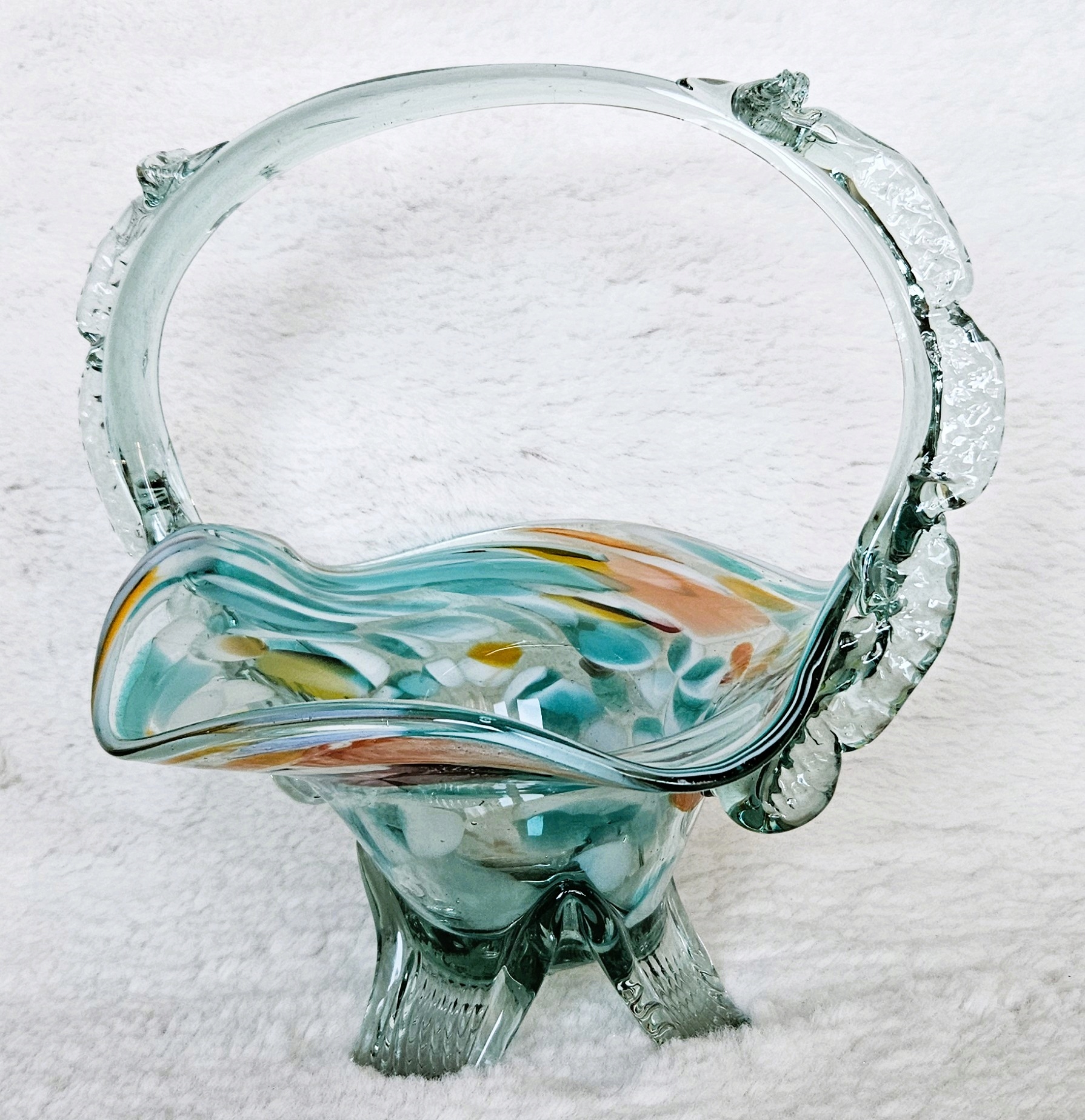 KOSZYK SZKLANY ANTYK PRL VINTAGE SELEDYNOWY RĘCZNIE DMUCHANE SZKŁO UNIKAT
