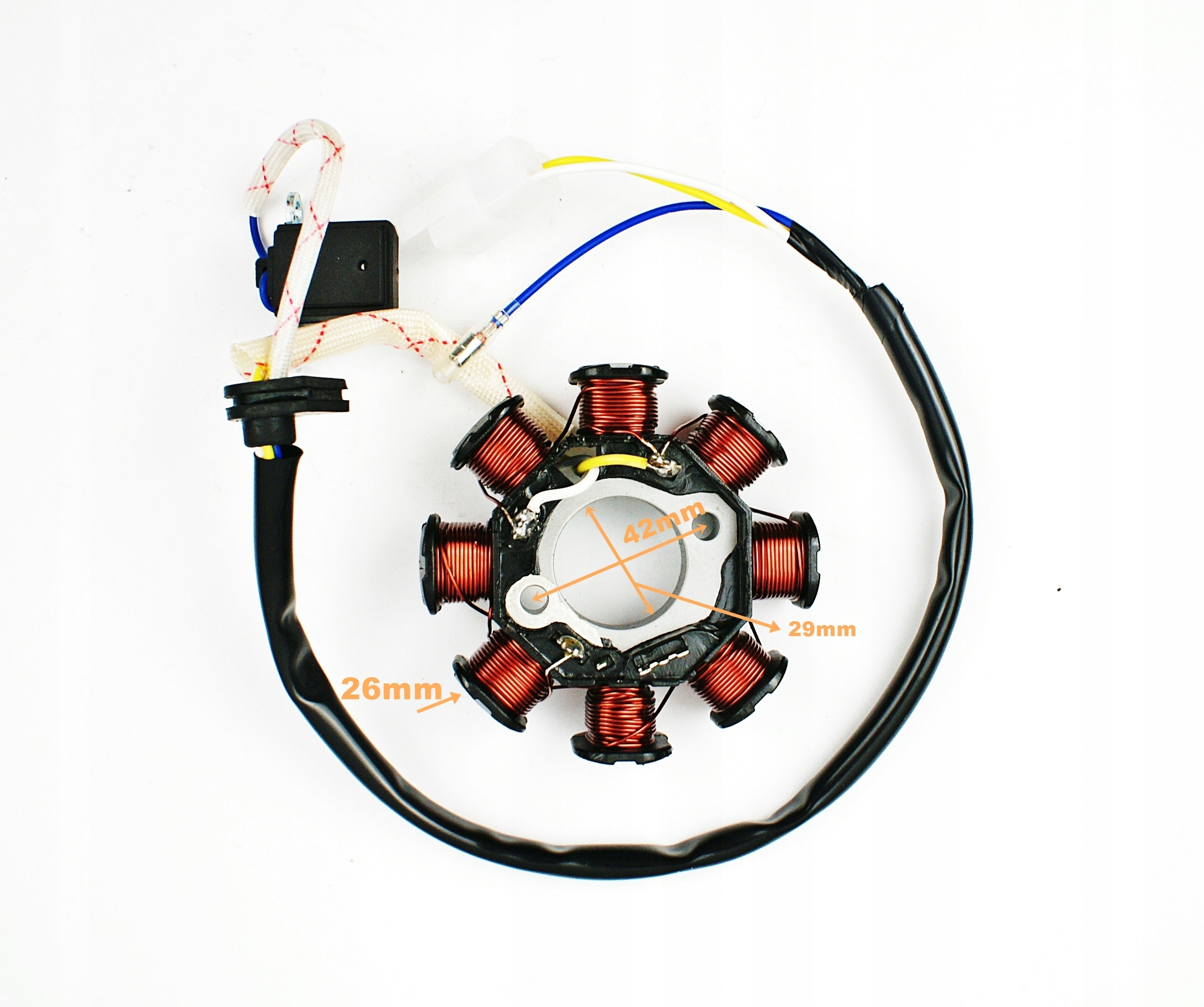 статора має основу, виготовлену зі сталі. Він має 8 котушок.
