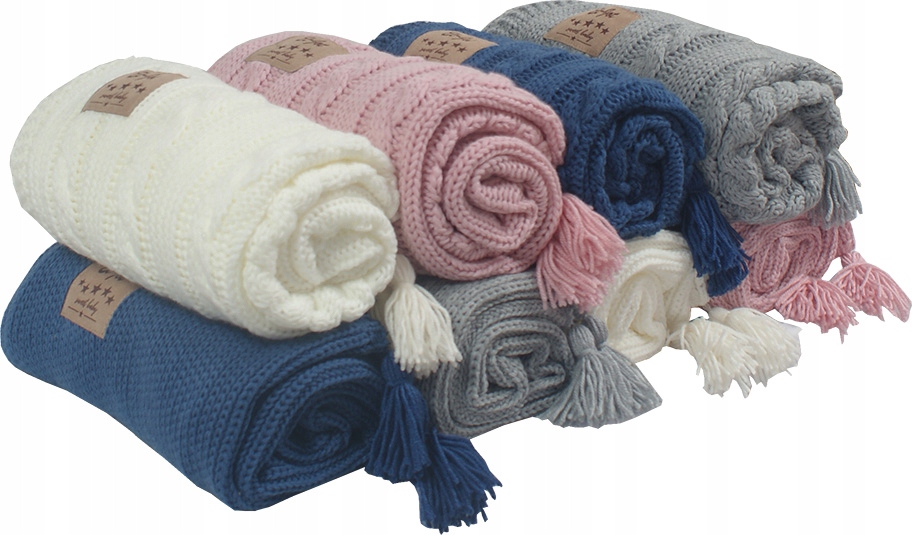 Всесезонна стильна ковдра виготовлено з акрилової пряжі гладкого переплетення зчотирма елегантними бахромами.