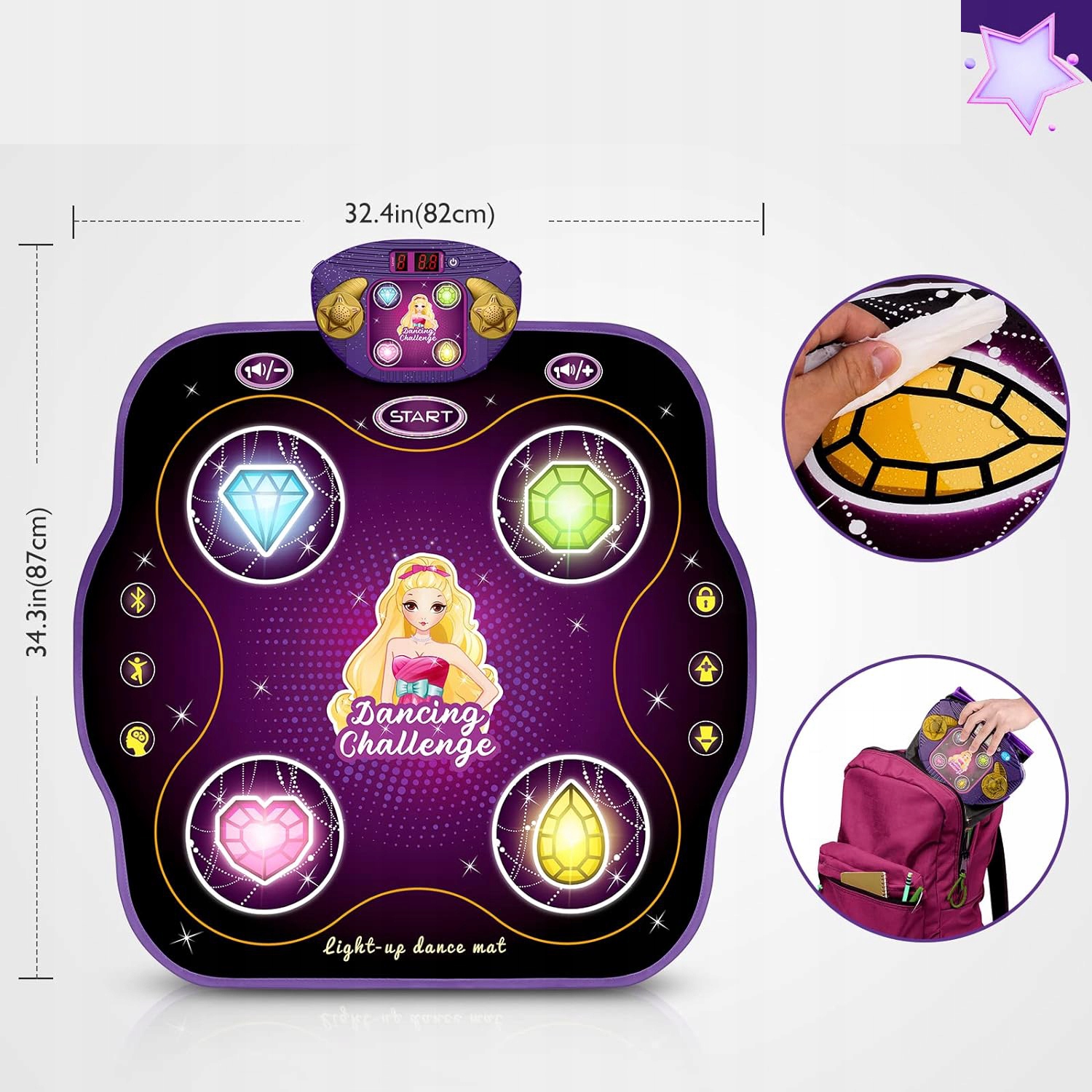 🎉🎉🎉 РОЗКОШЕНА ФУНКЦІЯ BLUETOOTH: цей танцювальний килимок із підсвічуванням підтримує технологію Bluetooth. Просто підключіть його до мобільного телефону або іншого пристрою з підтримкою Bluetooth. Виберіть улюблені пісні зі списку музики та керуйте гучністю безпосередньо з пристрою.