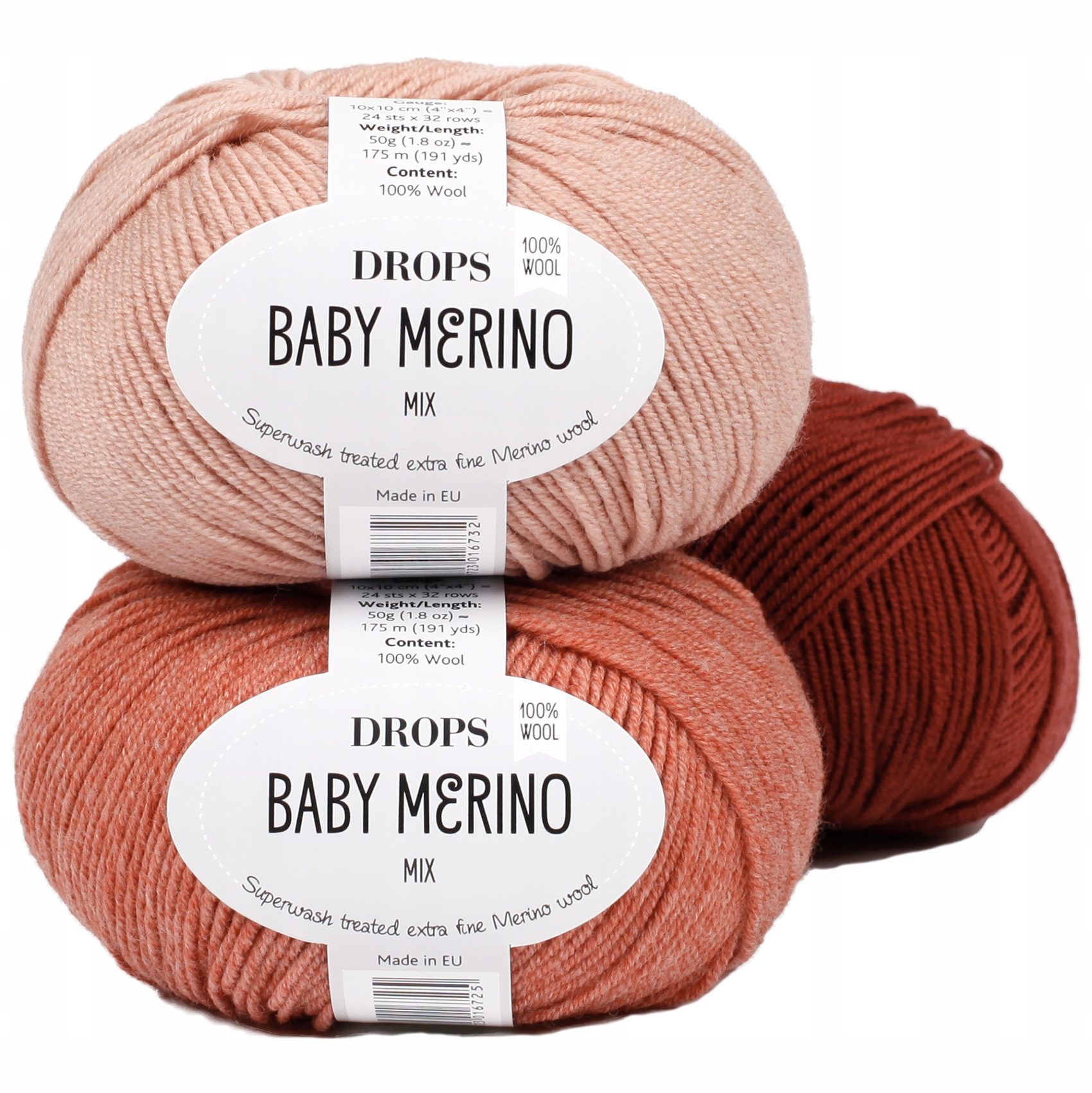 DROPS Baby Merino зі 100% мериносової вовни дуже м'яка, добре дихає і зовсім не дряпається - ідеально підходить для ніжної дитячої шкіри. Особлива структура DROPS Baby Merino, що складається з безлічі тонких волокон, робить стібки в готовому в’язанні надзвичайно рівними та регулярними, а сама пряжа надзвичайно гнучкою. З цієї причини особливо важливо, щоб зразок мав розміри, вказані в описі, інакше одяг може надмірно розтягнутися.