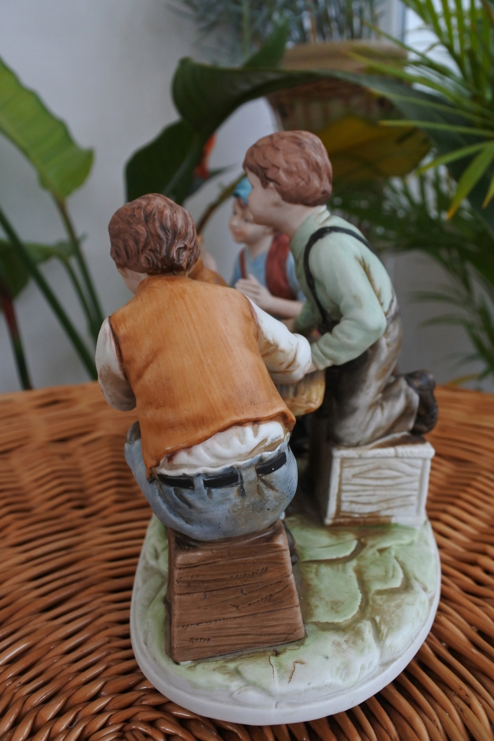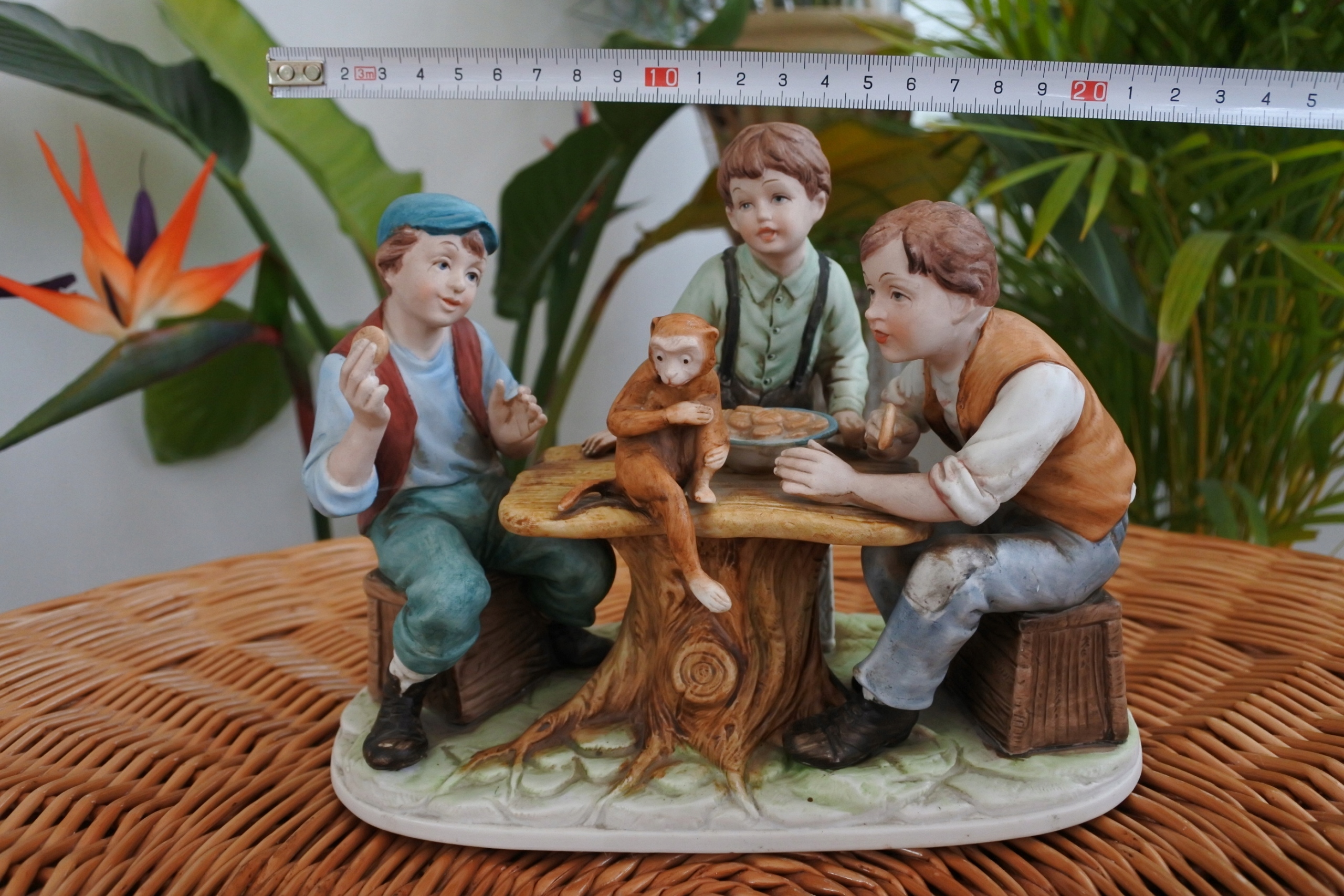Красива, оригінальна статуетка - хлопчики, які їдять торти з мавпою