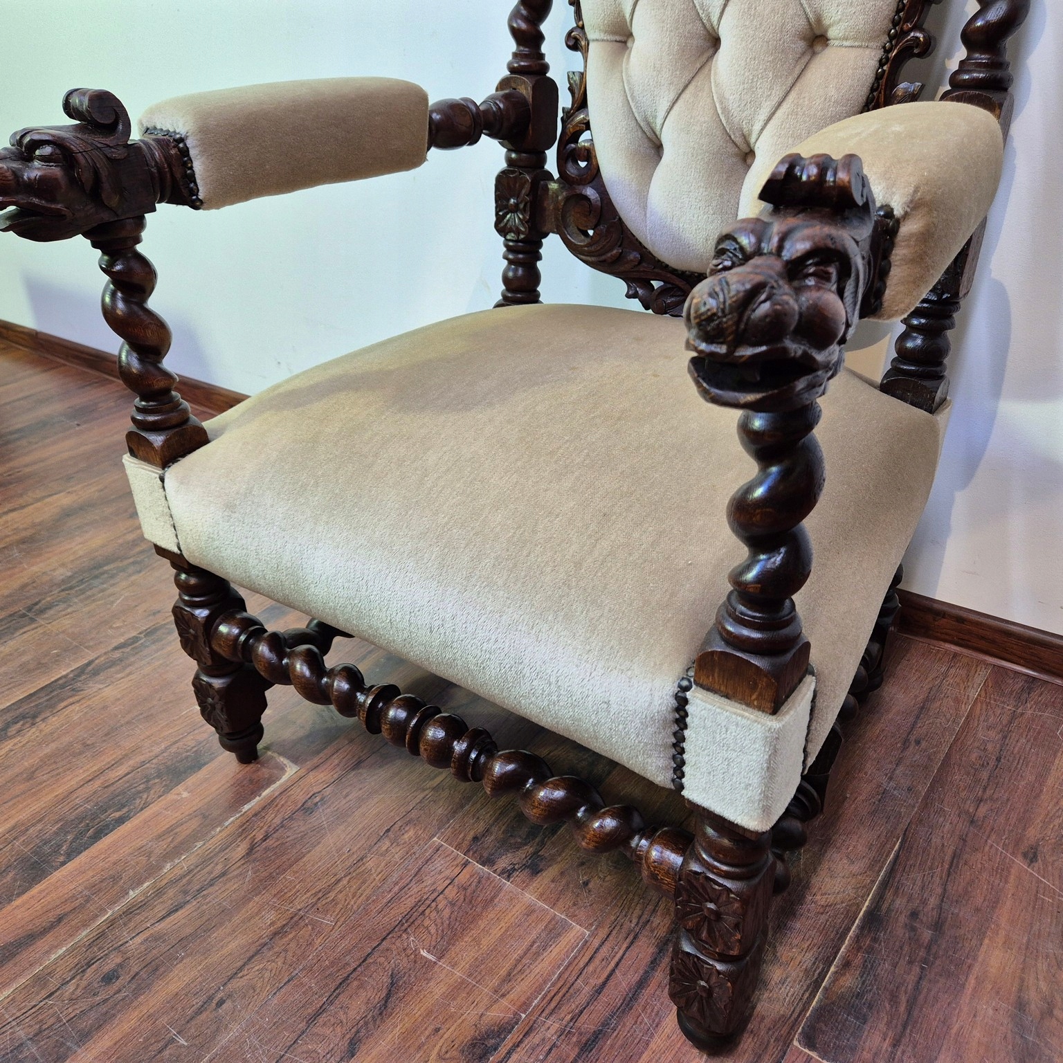 Красиве крісло еклектичний дуб Франція Велюр
