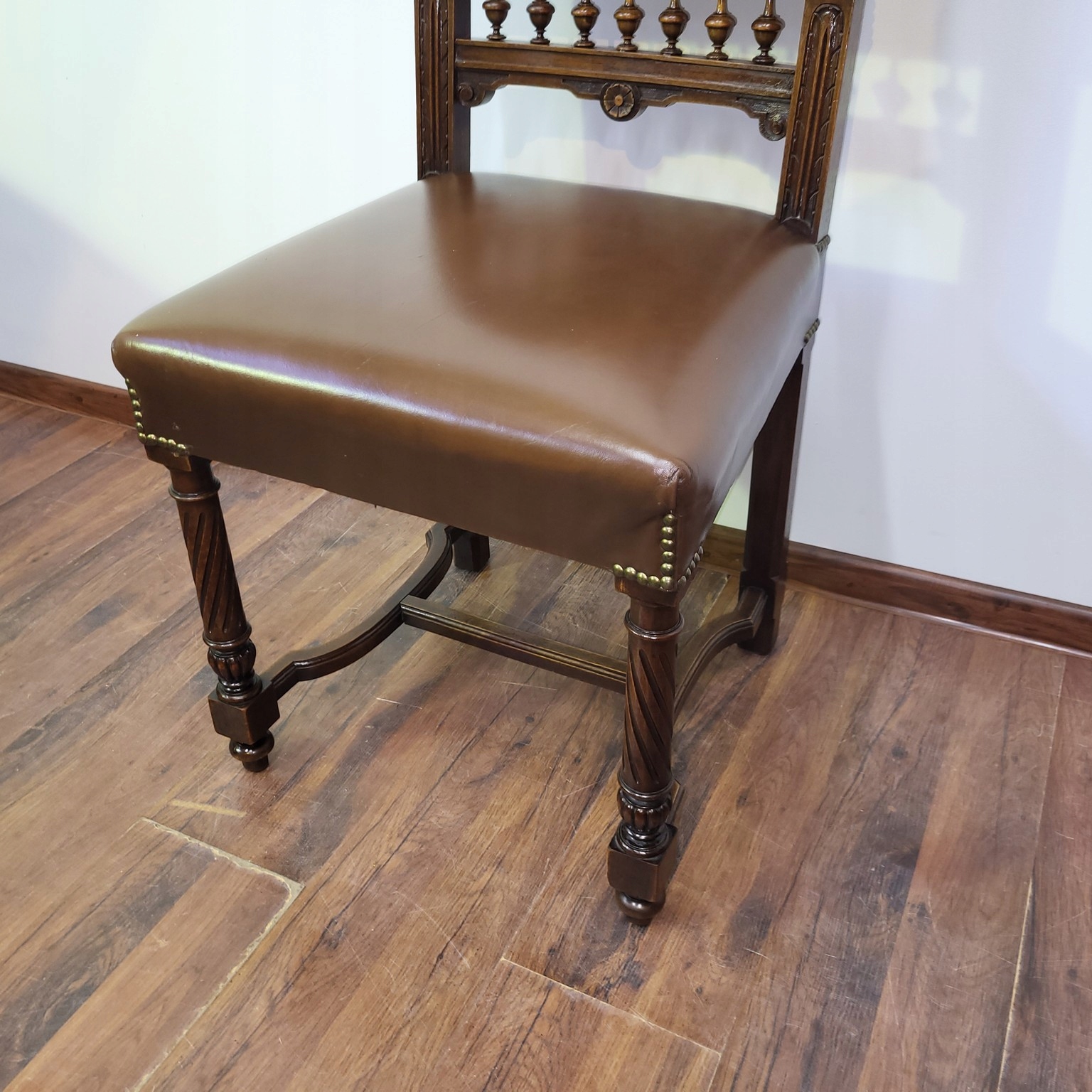 Красиві еклектичні стільці, 6 штук, французький горіх, натуральна шкіра