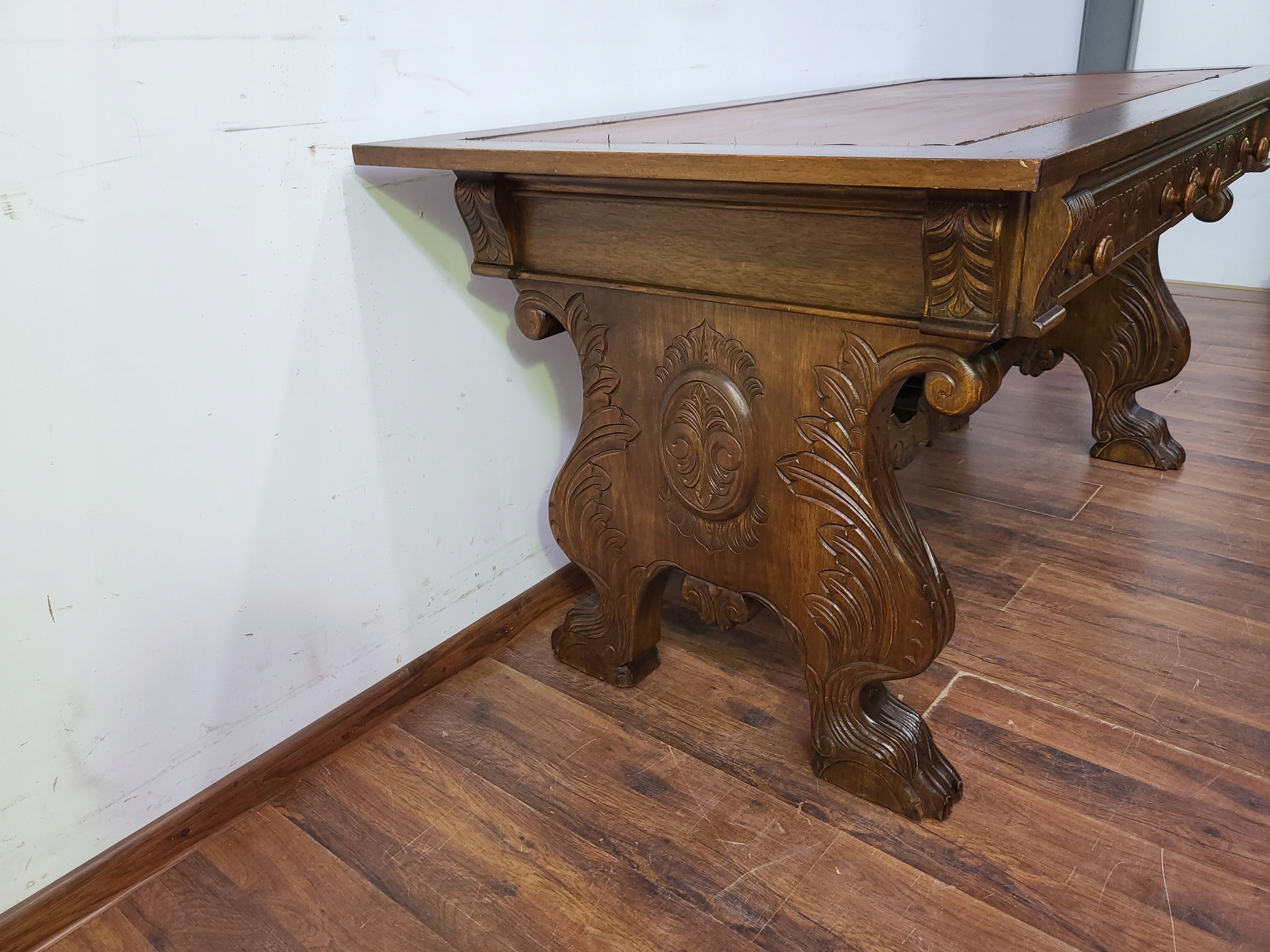 Чудовий письмовий стіл у стилі неоренесанс. Країна походження: Франція. Виготовлений повністю з масиву дуба. Дуже хороший стан меблів. Меблі відрізняються неймовірною елегантністю, замки в ящиках функціональні, один ключ в комплекті. p>