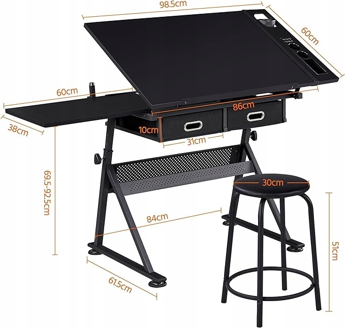 - Зручний і організований простір для зберігання: у столі для малювання є все необхідне для зберігання ваших предметів для мистецтва/офісного приладдя - легкий для чищення, знімний бічний лоток на столі з окремими відділеннями для різних канцелярських речей; 2 тканинних ящика для зберігання поза межами очей; додаткова відкрита полиця внизу для паперових рулонів і банок з фарбою.