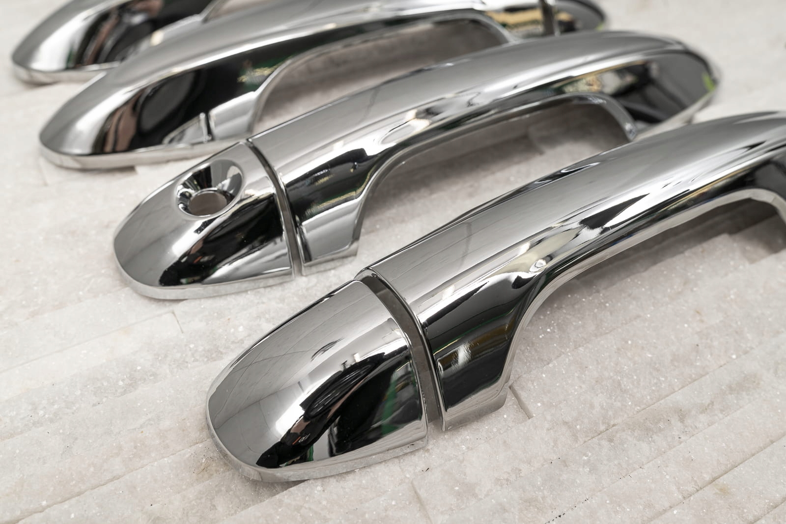 Декоративні хромовані накладки на дверні ручки є доповненням, яке доповнює стиль автомобіля ноткою спортивної елегантності. Ідеально підібрані до контурів автомобіля, вони змінюють образ дверних ручок RAV4, роблячи їх справжньою окрасою автомобіля. Виріб виготовлено з високоякісного хромованого ABS пластику.