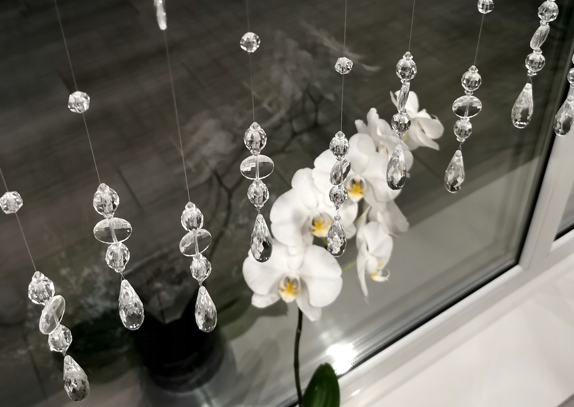 Чудово нанизані на прозору нитку кристали розсіюють світло, додаючи інтер'єру елегантності та стилю. Підвіску можна повісити на будь-який карниз завдяки петлі на її кінці.