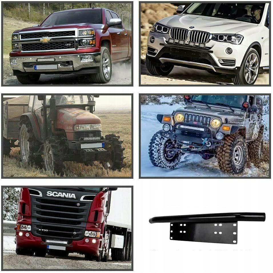 Підходить для більшості транспортних засобів. Монтажний кронштейн із використанням переднього номерного знака підходить для більшості вантажівок, пікапів, позашляховиків, автомобілів із отворами для номерного знака на передній частині.