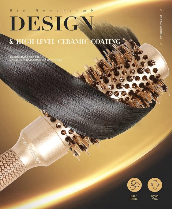 - ТЕРМОСТІЙКА НЕЙЛОНОВА ПРЯЖА: кругла щітка з нейлонової пряжі може витримувати до 220 градусів , зменшуючи пошкодження пряжі на 99%. Стільниковий дизайн забезпечує вільний потік повітря, швидко й рівномірно нагрівається, створює об’єм і хвилясті виділення
