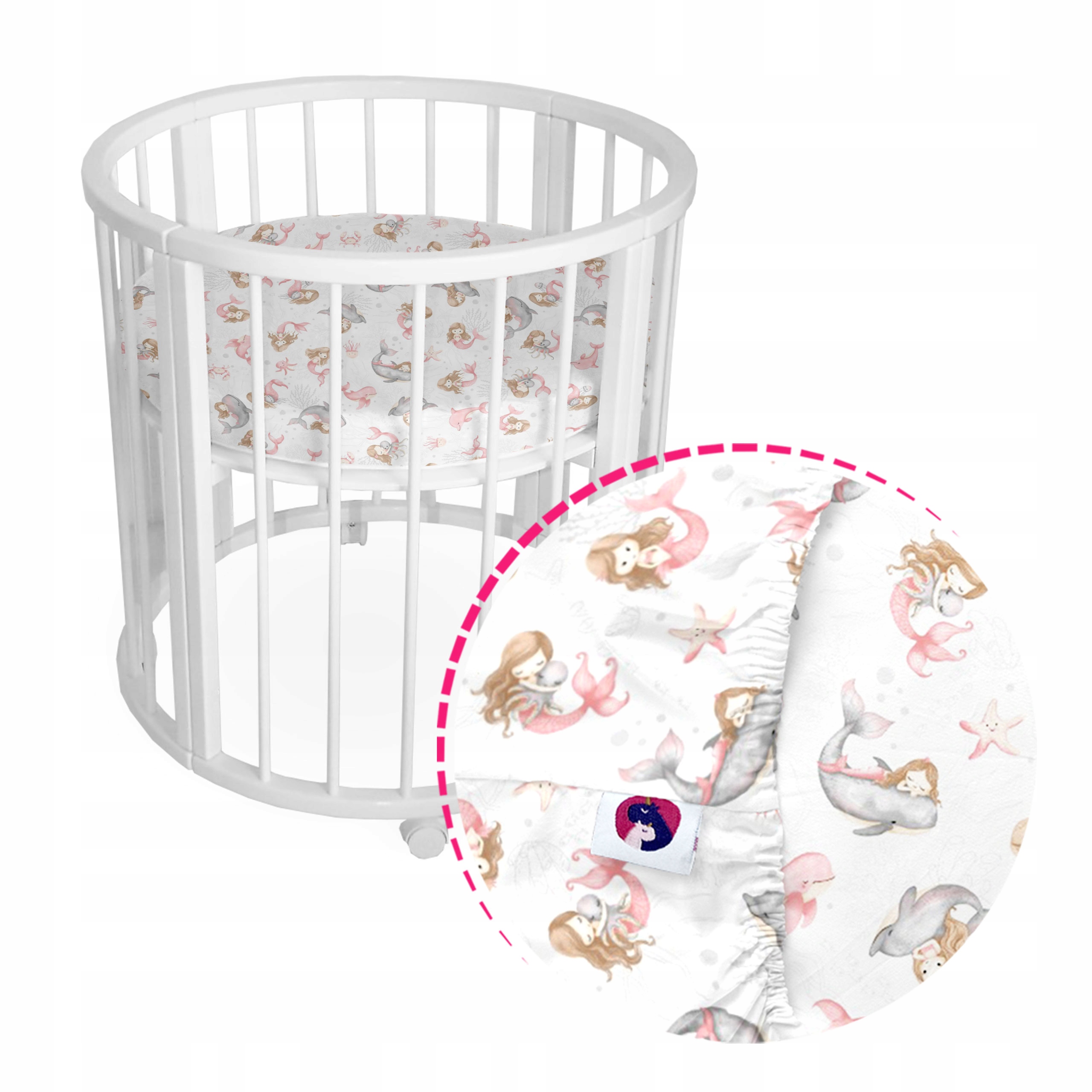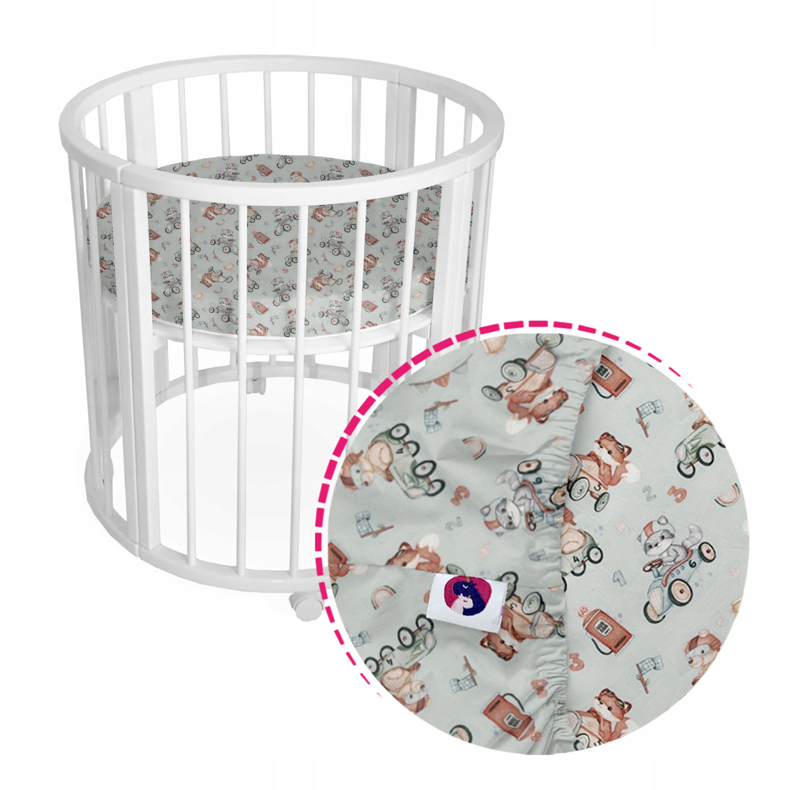 ✅ Зручне та практичне простирадло, адаптоване до ліжечка діаметром 75 см.